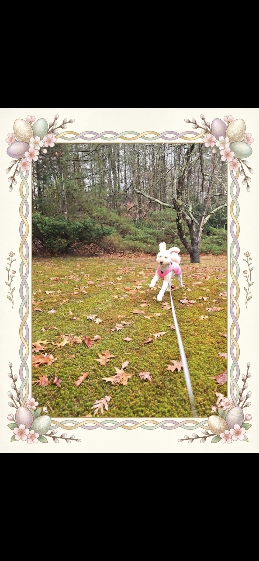 Who says gray skies can be boring? Not Millie! ๐Ÿ˜† Dressed in her signature pink jacket, she zoomed along the leaf-strewn hillside, sniffing every secret smell like a true detective.