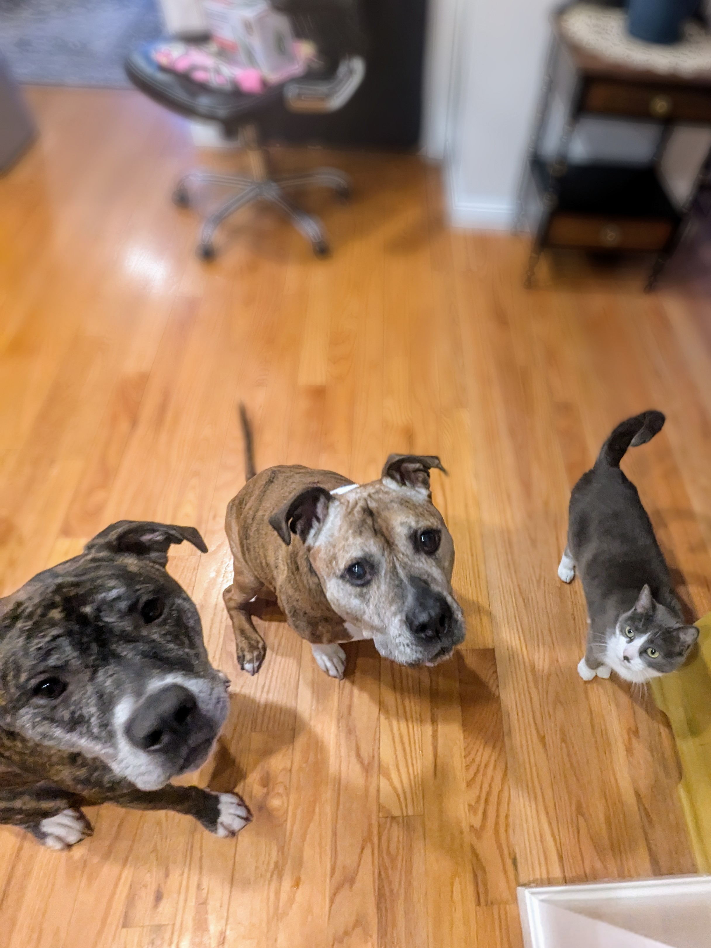 It was a Saturday with not a lot going on, a beautiful sunny day in a calendar of cold and overcast, Even Corey, usually insisting on quick trips outside was delighted to keep me company while I policed the yard for landmines. Mav was needy too – I again slept on the couch, depriving him of cuddles in bed. He made up for it by coming to work with me in the office. 🥰 I got to spend some time with the ratties too, which was wonderful. Athena remembers me! But I’m still trying to win the other ones’ trust. When you add in the beautiful curved monitor in the office and a near-endless supply of Cap’n Crunch, it feels like I won the house-sitting lottery. 😂