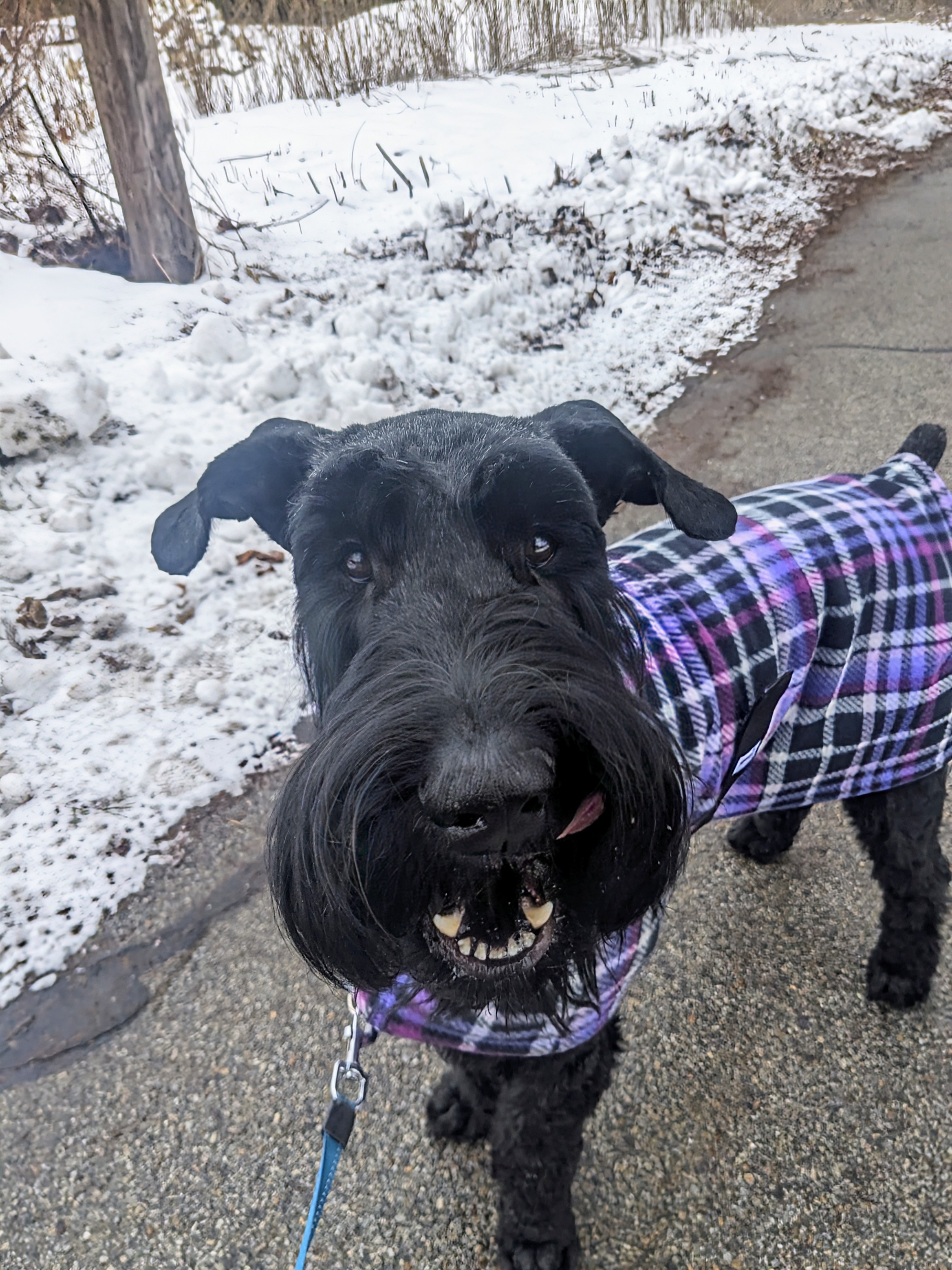 Jameson is all ready. A very handsome boy. But today when I arrived he had a brand new haircut and he got to wear a new sweater. You can tell he knew he looked good because this tall dog was standing even taller 😆 . We had a great walk , did a lot of sniffing and exploring, and we even said hi to the neighborhood chickens!