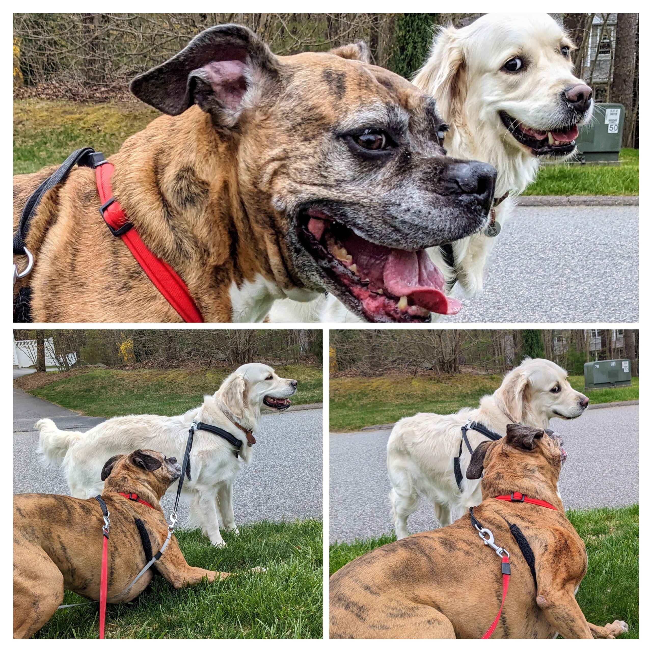 I brought my friend Sayde to walk with bagel today. The two got along great, both being playful and coy. Bagel was adorable, trying to get into Sayde’s face to steal a little lick before scrambling away. Sayde would give chase and do the same thing bsck. I just love watching dogs play! ๐Ÿฅฐ