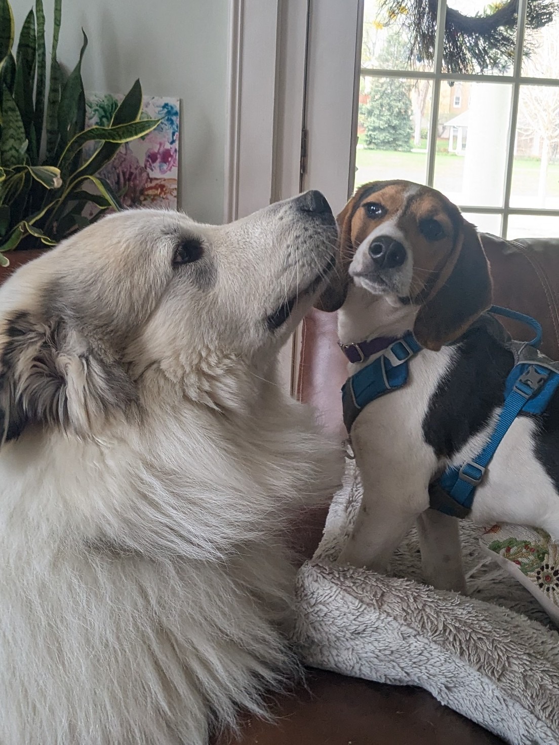 Pip doesn’t take up much space but he has such an oversized personality! So when he met 3 MUCH bigger dogs today he puffed himself up and threw himself into the fun. 🙂 He had walks with Packer and then Millie, and got to hang out with white giant Aneto at the house. Aneto was so sweet and patient with him! 🥰 This mismatched pair bounced all over the house and practically turned it upside down! Fortunately they had enough energy to bounce around some more and turn it right side up again! 😂 They are going to sleep well tonight (and dream of much bigger/smaller friends)!
