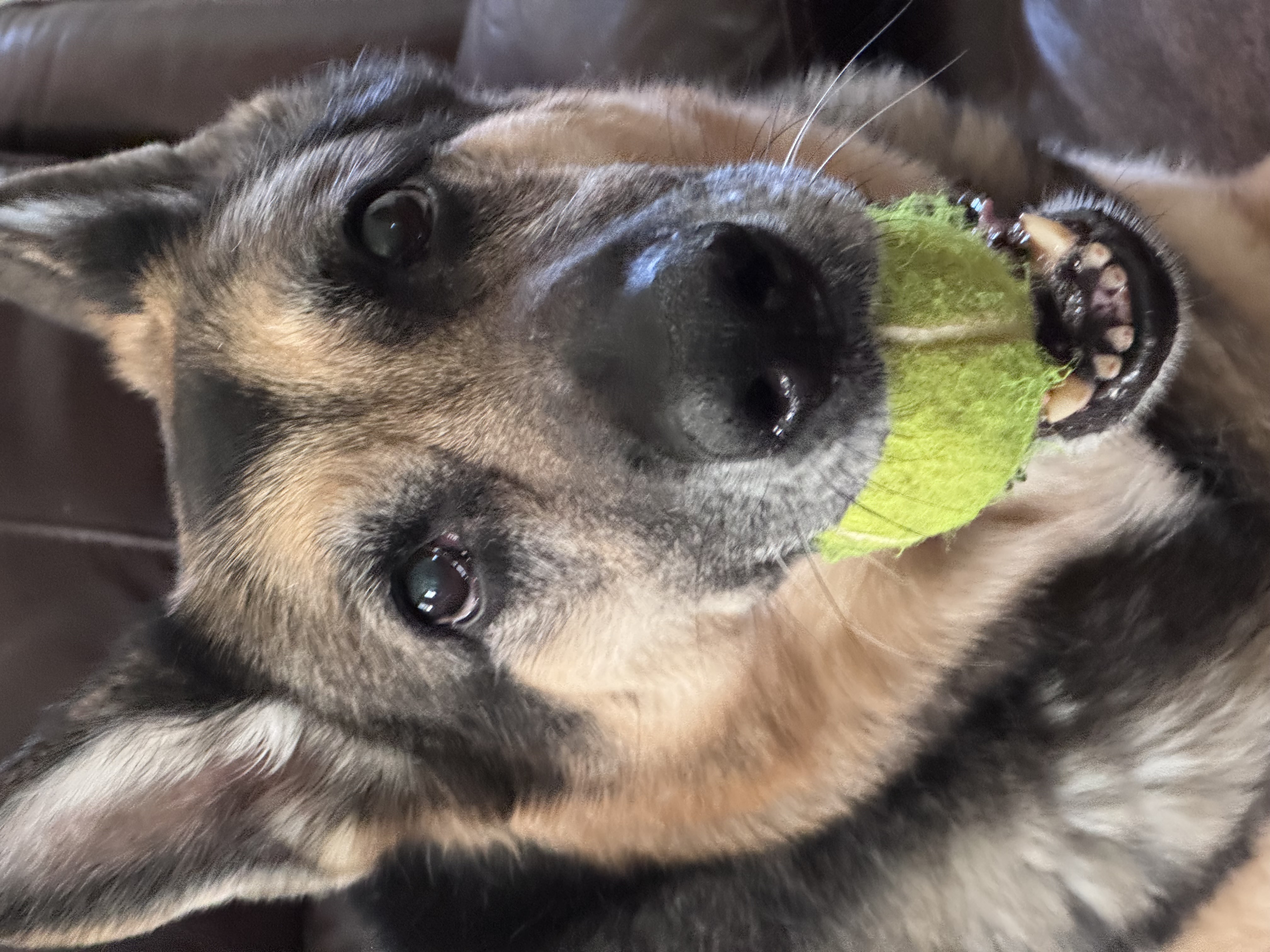 Had a lunch date with the beautiful Nova today. When I arrived, she gave me a complete sniff-spection, but then she realized we had met before. So we took a little stroll outside, 🐾 did some business, and then we returned inside for a snack and some playtime with her favorite tennis ball. 🎾