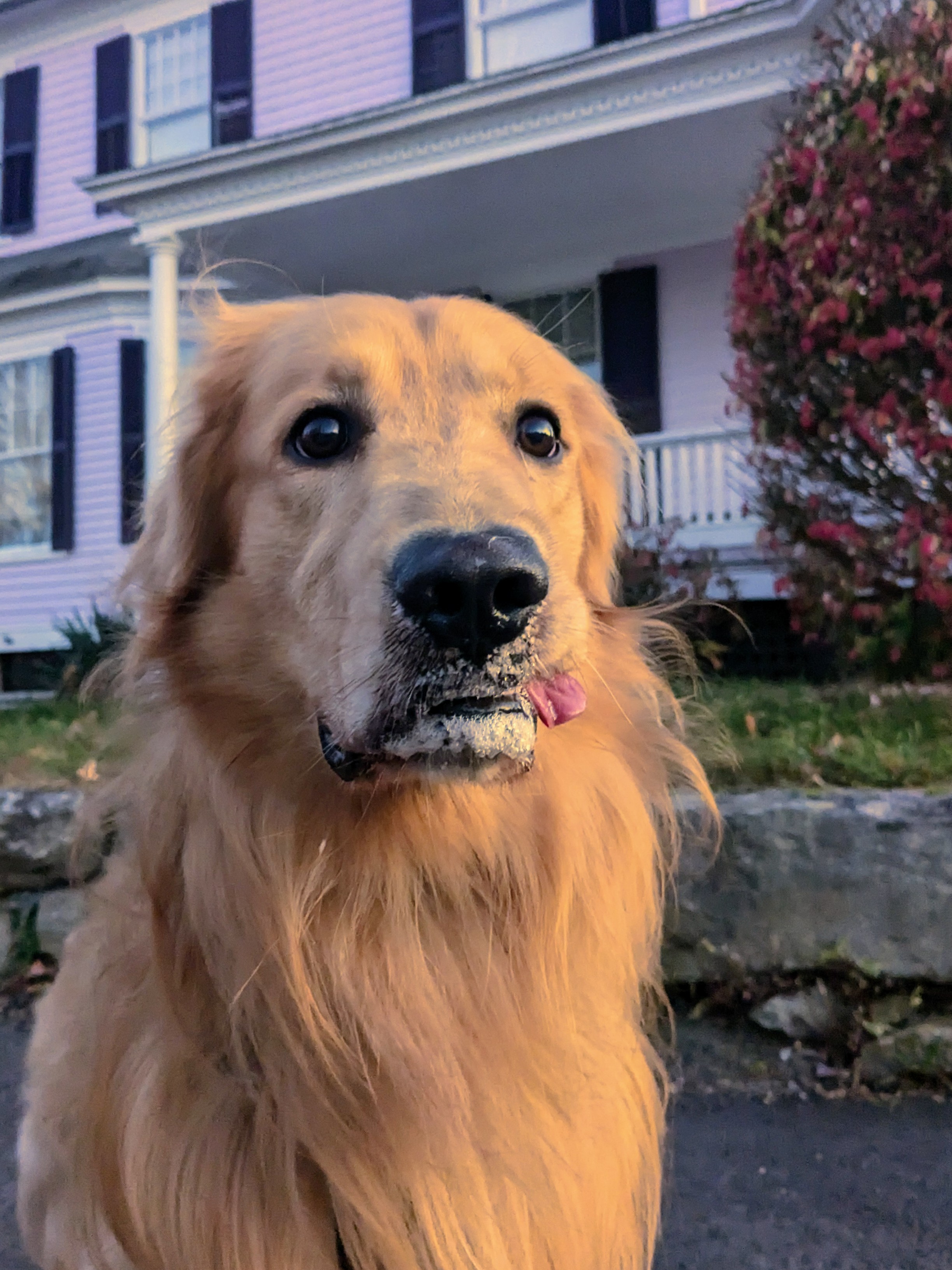 Usually Maxwell and I just stick to the common, but it was covered in leaves and there was a lot going on just beyond it. We ran into a friendly Sheep-a-doodle who was very interested in saying hi to Max. 😊 Max was a bit rambunctious and “Gabriel” backed off. But once Maxwell found his cool the next time we passed them, he got to sniff and prance and play a bit! 🥰