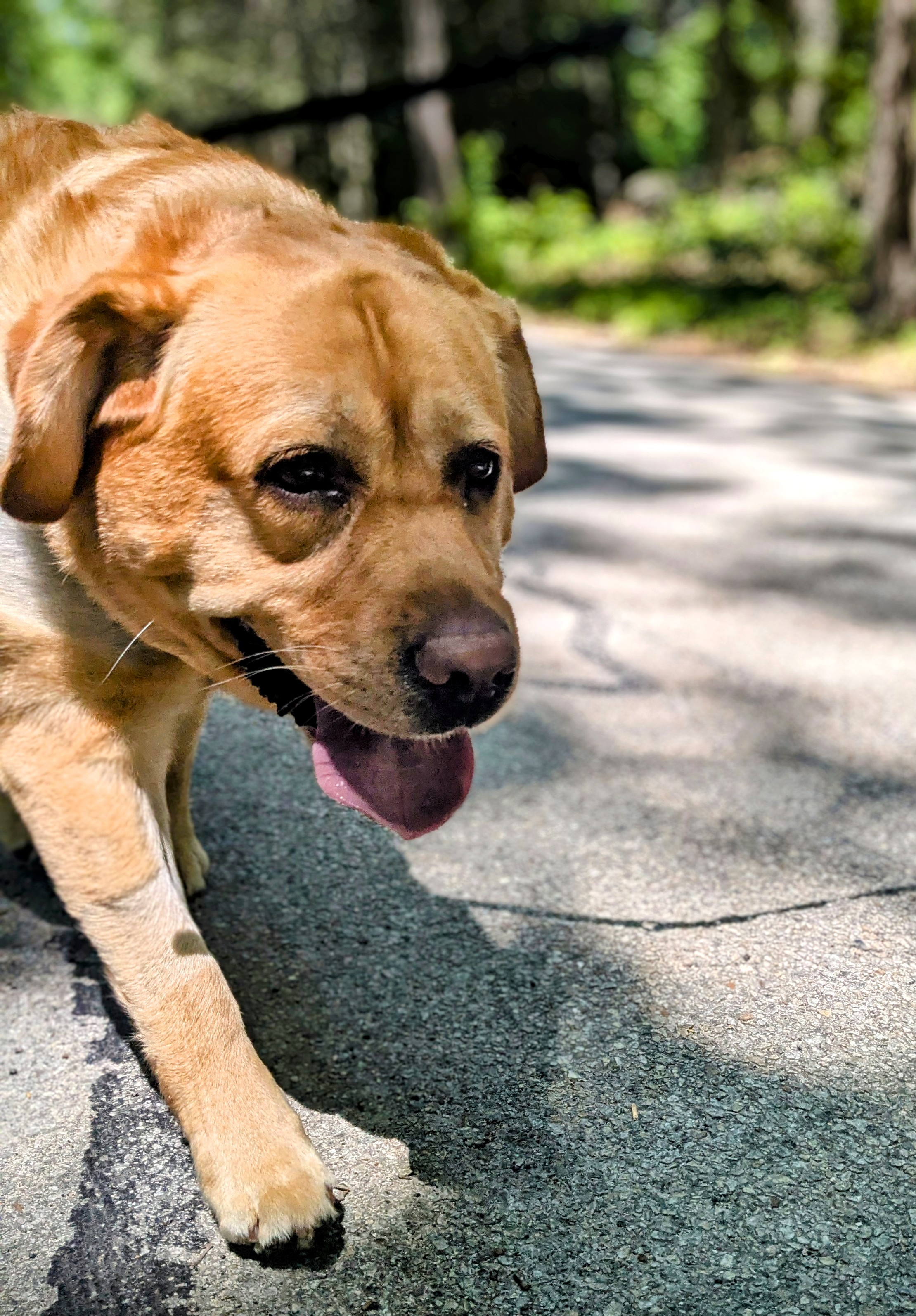 We had a nice walk, and at the end Of Charlie was tired and had no interest in going back in the car, neither through the hatch or door. He flatly lay down and refused to budge. I gave him a couple of minutes to rest – he was genuinely out of breath – and then again, clipped the leash to his collar instead of the harness. And again, it took only minimal pulling to direct him into the back seat.
