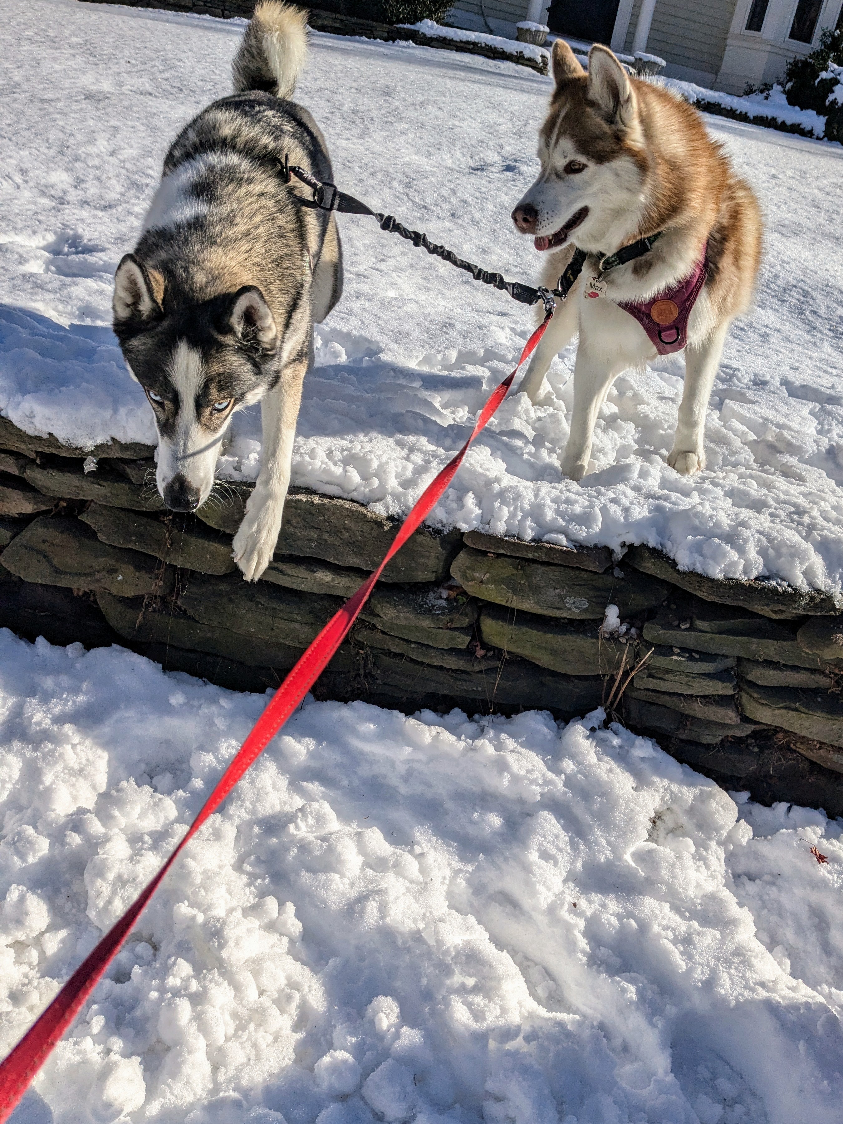 It was such a fun social club today with 2 sets of siblings! Little puppy Lucy couldn’t get enough of Max and he was quite flattered by the attention. He and Packer stuck close together and managed beautifully. 🥰 Guess they’re used to close company! We walked around Old South Cemetery and Hobb Brook, but they were much more interested in each other than the scenery! 😅🤩