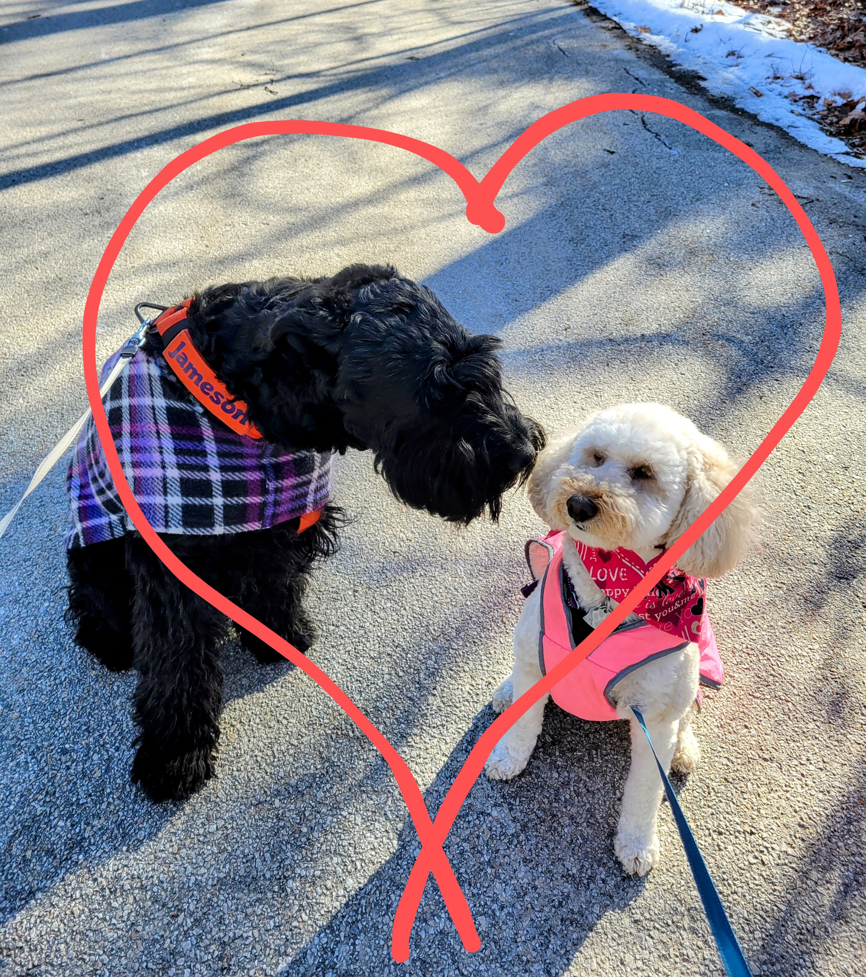 Millie and Jameson go way back and are seemingly a mated pair and it is so adorable. The most adorable puppy love to witness ❤️ They are honestly the perfect pairing, too – they are sweet and loving and joyous…the only difference is their size! 😆