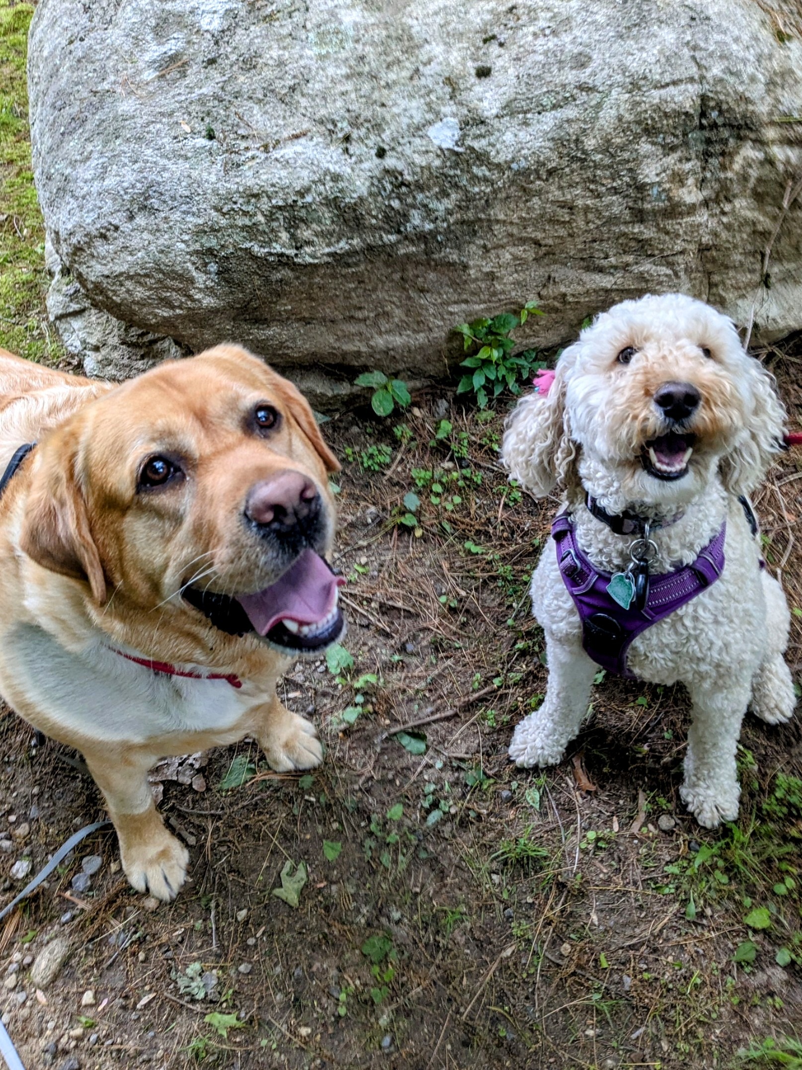 Millie was so excited to see the boys again today! When she stepped outside, she ran right up to Charlie for a quick nose boop and off we went. Charlie was his charming “I like you but sooo much good stuff to sniff self!” He loves to explore and of course Millie followed along and they sniffed together all the interesting smells! Charlie found a puddle to plop in and Millie thought it was the coolest thing ever! But at one point, Millie had had enough sniffing and puddle splashing, since it’s her neighborhood after all, and decided to show off her super cool zoomie moves to impress Charlie! She was running circles around him and us to be honest! It was hysterical! (Video below) I almost didn’t make it up the hill I was laughing so hard! Charlie being Charlie, was super casual, trying not to break his nonchalant persona, kept cool. but I know he wanted to join in her crazies! If Charlie wasn’t sure how he felt about Millie before, I think she really impressed him! So happy they are pals! ❤️