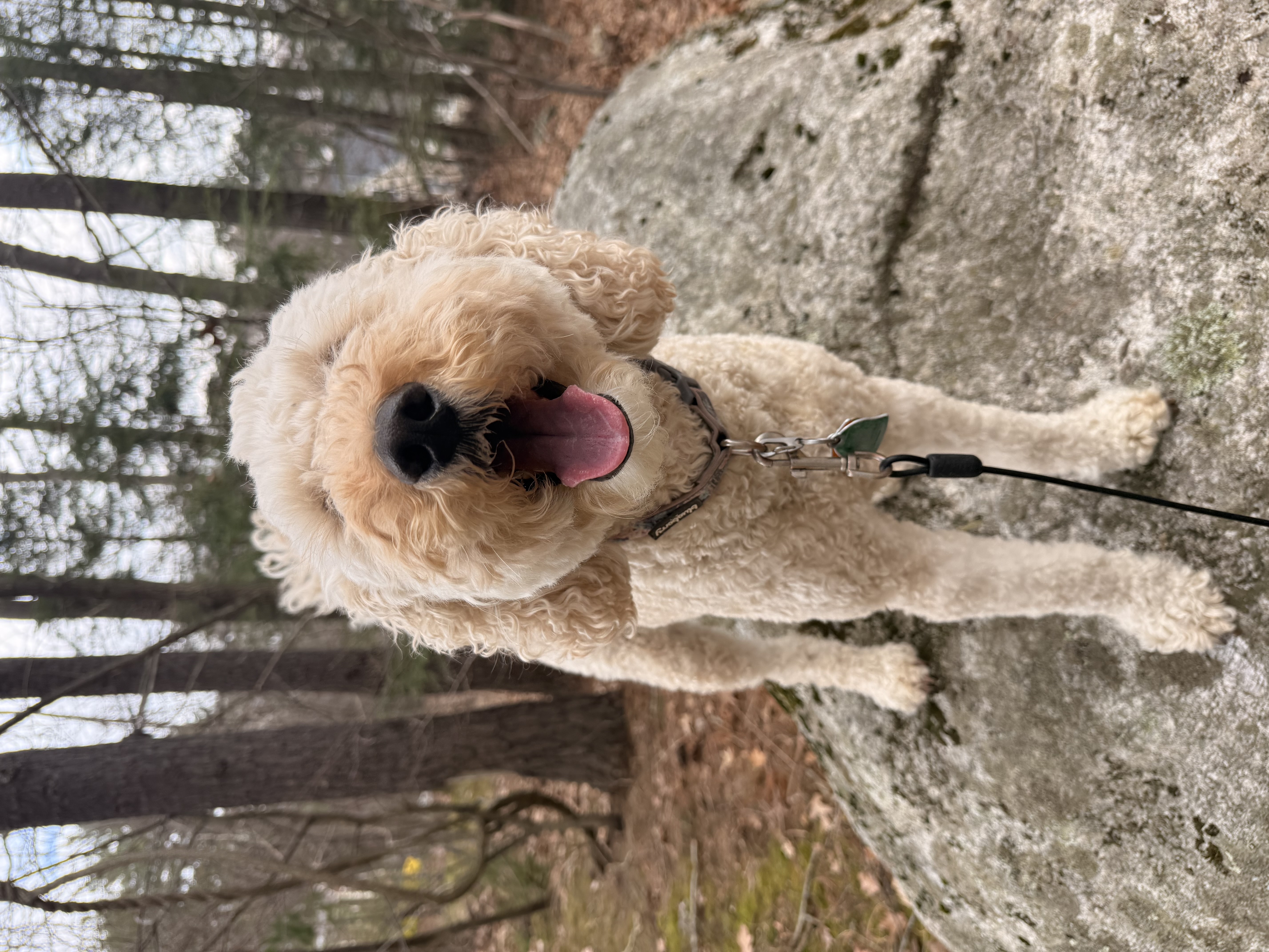 Millie’s rock is well known to anyone who knows or has heard of Millie because it’s special to her which makes it special to us. The past couple months Millie’s rock has been covered in snow and ice so she couldn’t jump up and pose for a treat. As the weather was so fabulous today Millie was in a wonderful mood head held high and paws moving fast. Millie not only jumped on her rock on the way out but also on the way in. 🥰