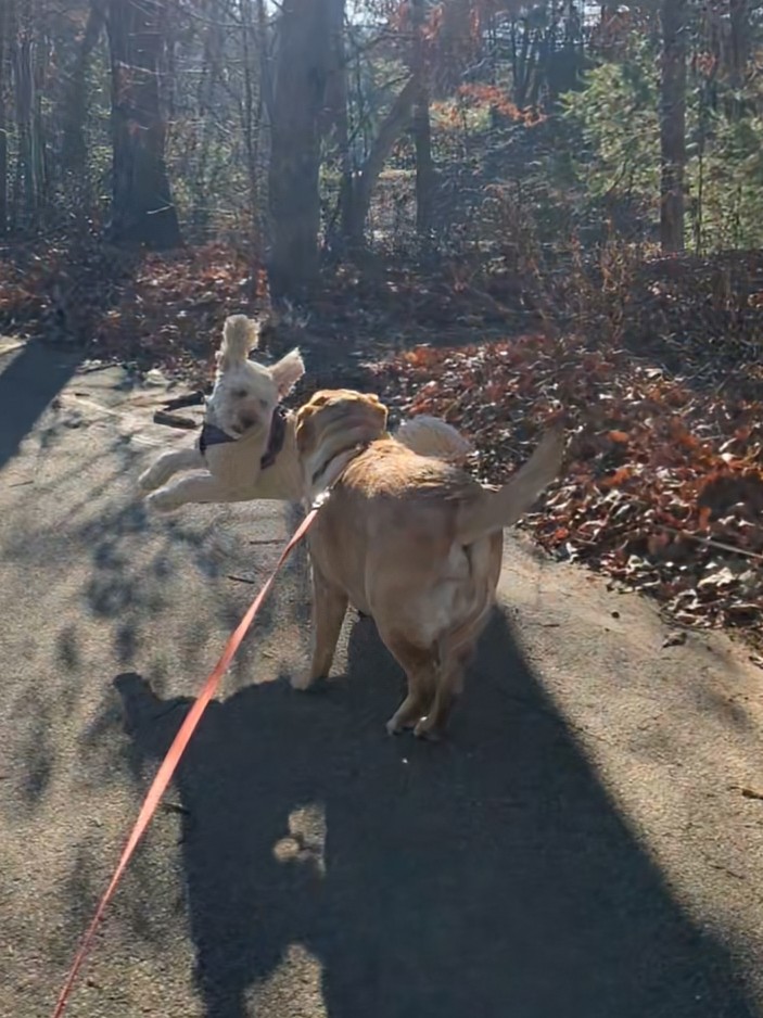Today Millie got to walk with her friend Charlie who she just adores! She pranced around him like the silly girl she is! 😂 (Video). While walking we ran into a neighbor and his dog Otis! They were all so happy to meet each other. All three of them became fast friends! What a great start to the week! ❤️🐾