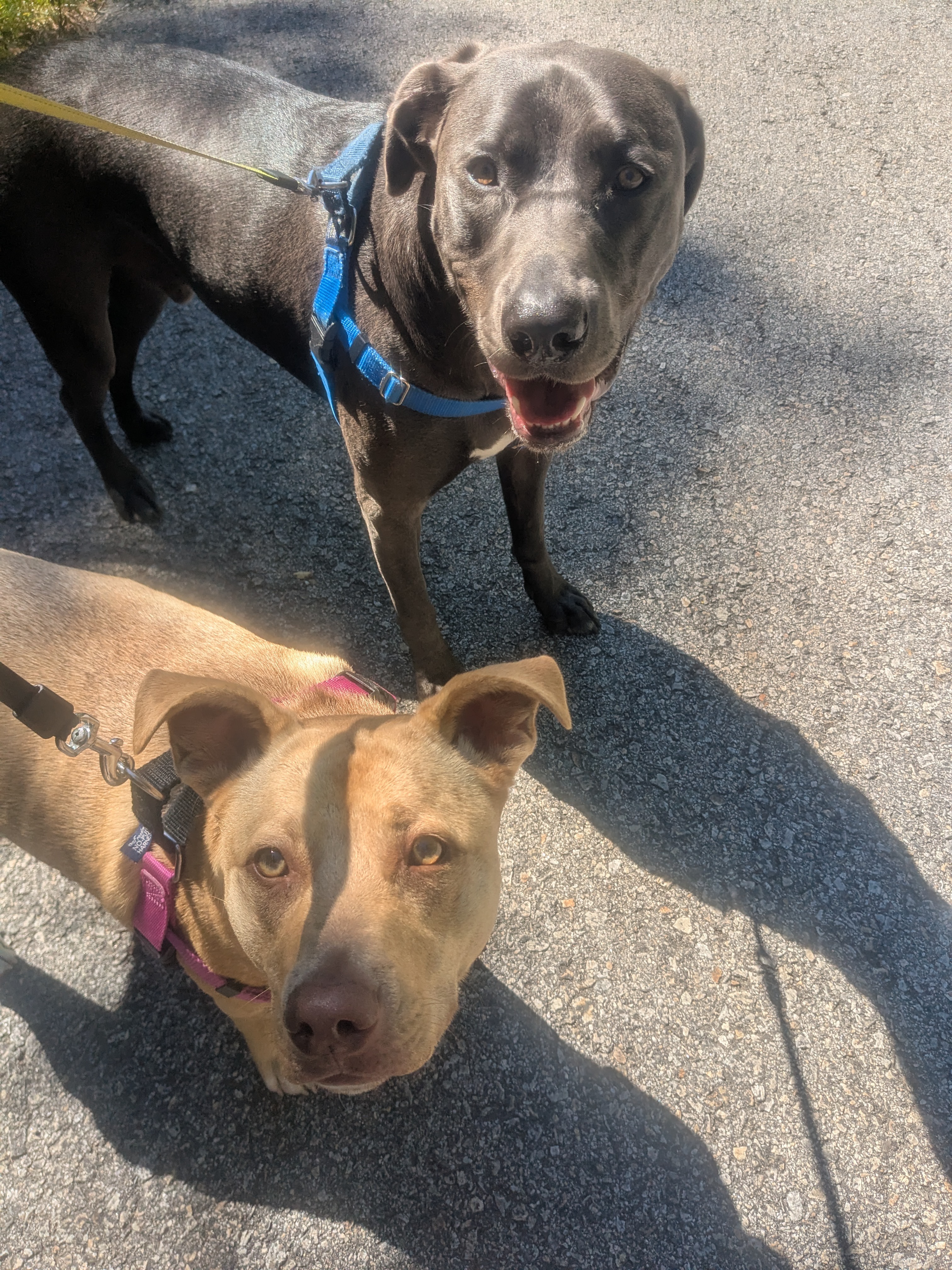 Today’s walk started out as they always do, with happy wags and so much love! It was another beautiful day to enjoy with my them. We had fun sniffing and rolling in the grass. Lucy searched for a stick and found the perfect one to carry. It was a crunchy stick, her favorite! But then things got a little weird. The pups always listen for the squirrels and chipmunks in the brush and think about giving chase but they are really good about resisting the urge and we keep on moving forward on our adventures. Today I thought I heard something splashing in the river but the pups didn’t seem phased so I shook it off. Further down the street while the pups were intrigued by some interesting scents, I started to hear loud rustling in the brush on the opposite side of the road so I I turned to look when all of a sudden Oliver got in protective mode, puffed up and did the loudest doggy roar as he darted to the other side, Lucy followed suit with a growl and bark, and then they both quickly headed back towards the house as to separate us from what ever was stalking us! Once they felt the coast was clear, they slowed down, Lucy picked up her stick she found earlier and we continued our walk! I am not sure what was in the woods. Could have been a Turkey, a bobcat or even a mutant squirrel! Whatever it was, Both Lucy and Ollie didn’t want it close and I didn’t want them to be harmed! Sure I was a little shaken by the whole thing but they made feel safe. I felt like I was part of there pack. ❤️❤️ Truly my Heros!