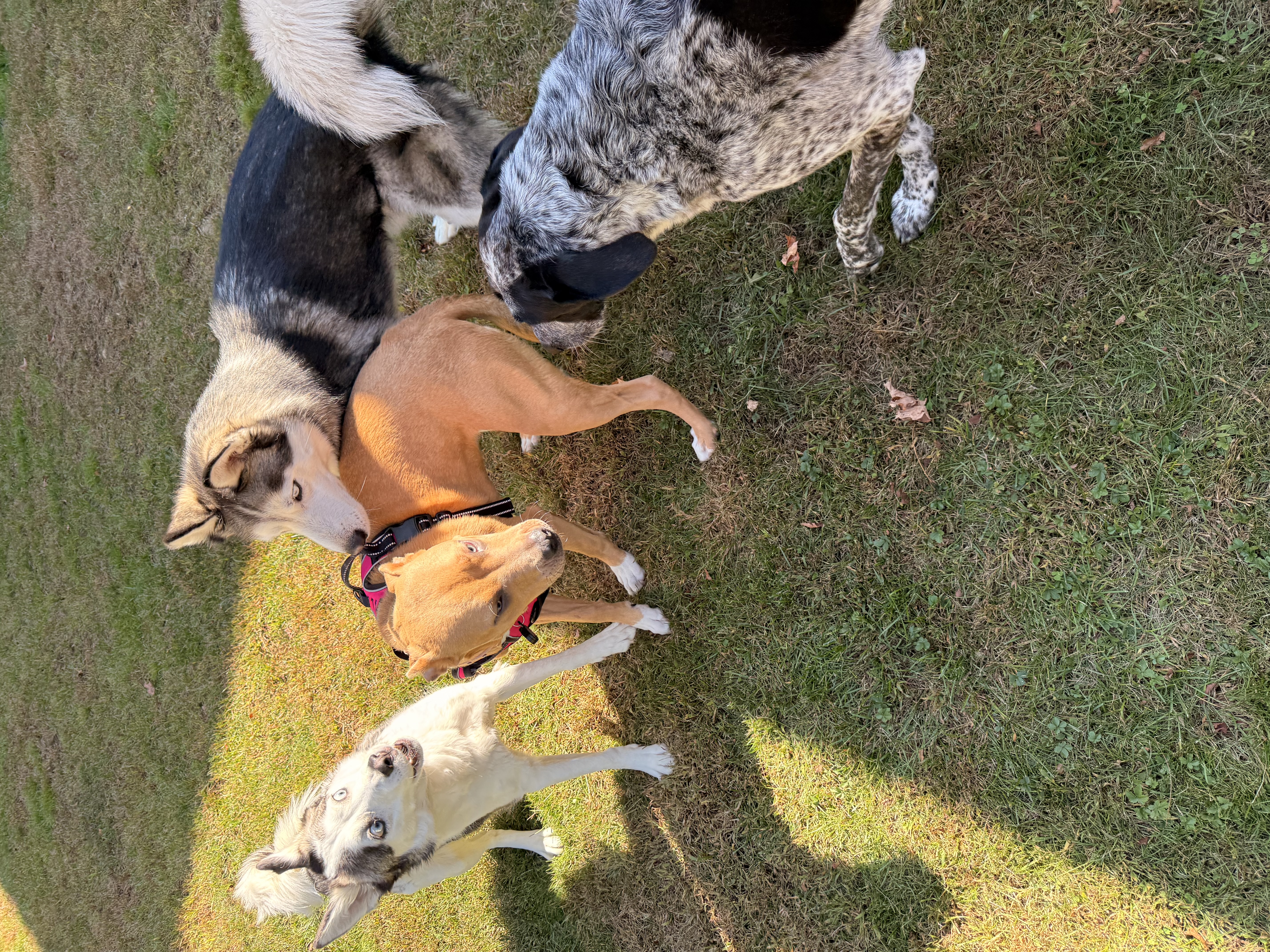Today the waif crew got to meet miss Nala! As soon as she walked into the fence she was bombarded with attention and greetings. Everyone got along great and ran around like crazy! Wesley wouldn’t stop following her I think he might have a crush. Waif said hello and hung out with me after he was done getting to know Nala. So happy I got to see the kids I missed them
