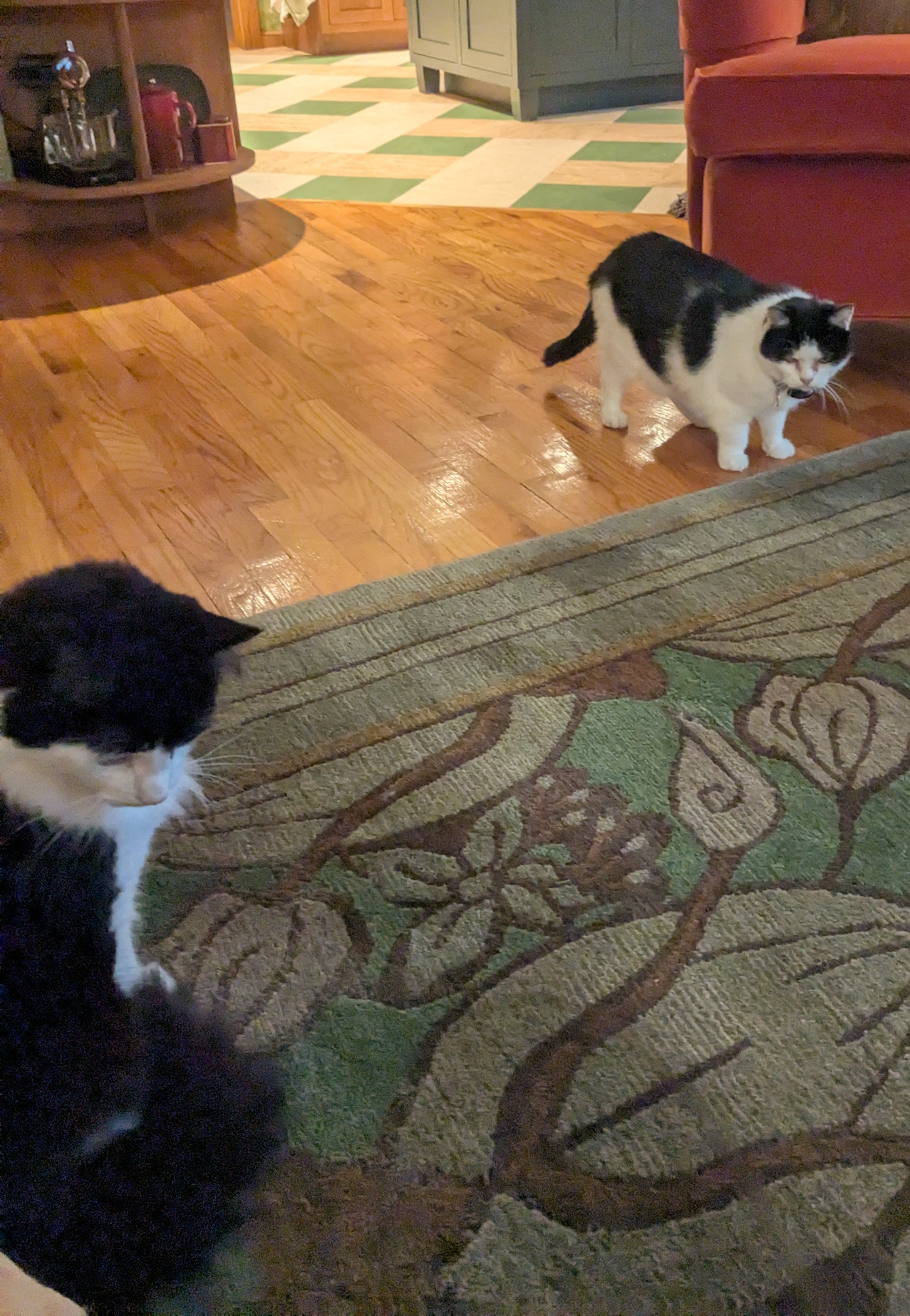 I am always so excited when I get to visit these adorable faces again! Wally was extremely meowy and oh so affectionate while Cookie played her best hard to get, well until dinner was served that is! After dinner we had fun playing with their cat dancer toy and their mousy wand! Oh and of course kibble and treat chase! Weee! 😻😻