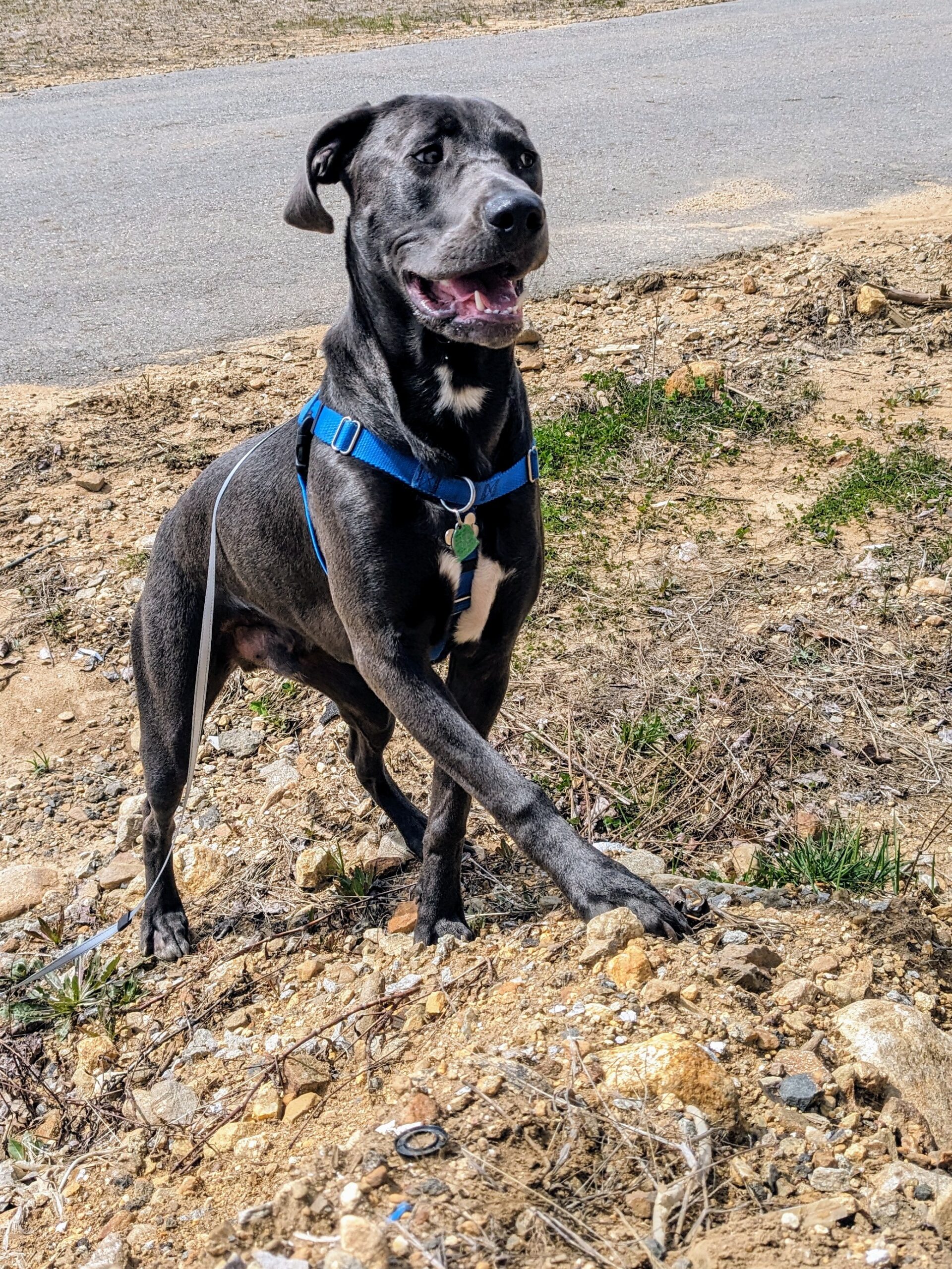 Weimaraners are generally more known for their speed than their courage 😆 But today Oliver was ready to take on the world! First, we explored around the circle where there was tons of construction and big dozers. Oliver approached warily but was more curious in the people working then scared of the machines. Then we went down the street towards the mailboxes, his least favorite place, and with just a little bribing and cajoling we were right on our way! He even stuck his face in a puddle and proudly pulled a soggy leaf out as his prize 🥰 here is a dog giving his breed its due!