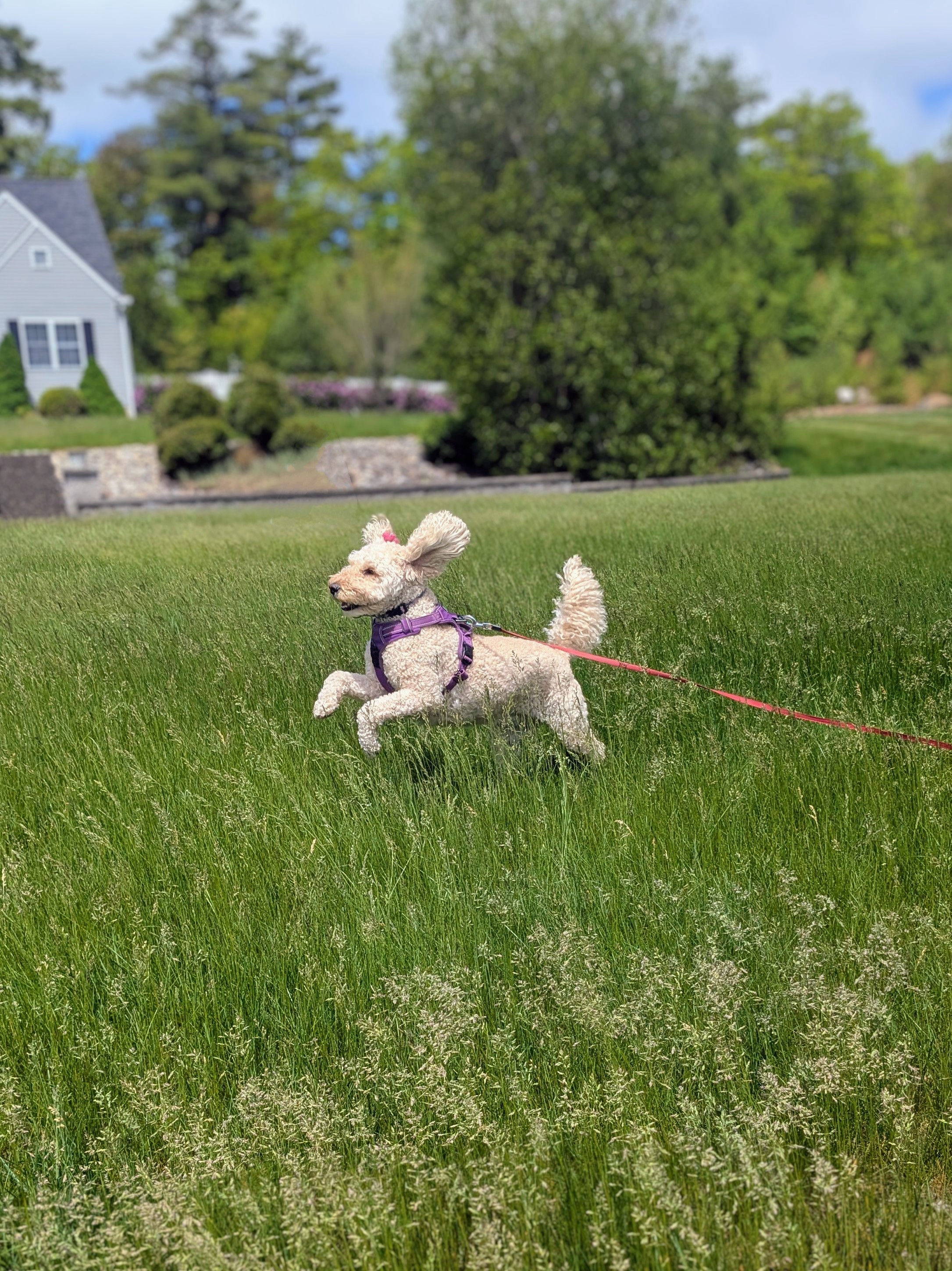 We came to a yard that had some particularly long grass and Millie couldn’t resist running and prancing through it! Every time she would appear from the grass, hopping around, I couldn’t help but say “Boink! Boink! Boink!” It was adorable to watch and she looked like she was having a blast!! She finished off the fun filled walkies with some serious fallen stick destroying too! Boy do I love spending time with this happy pup!