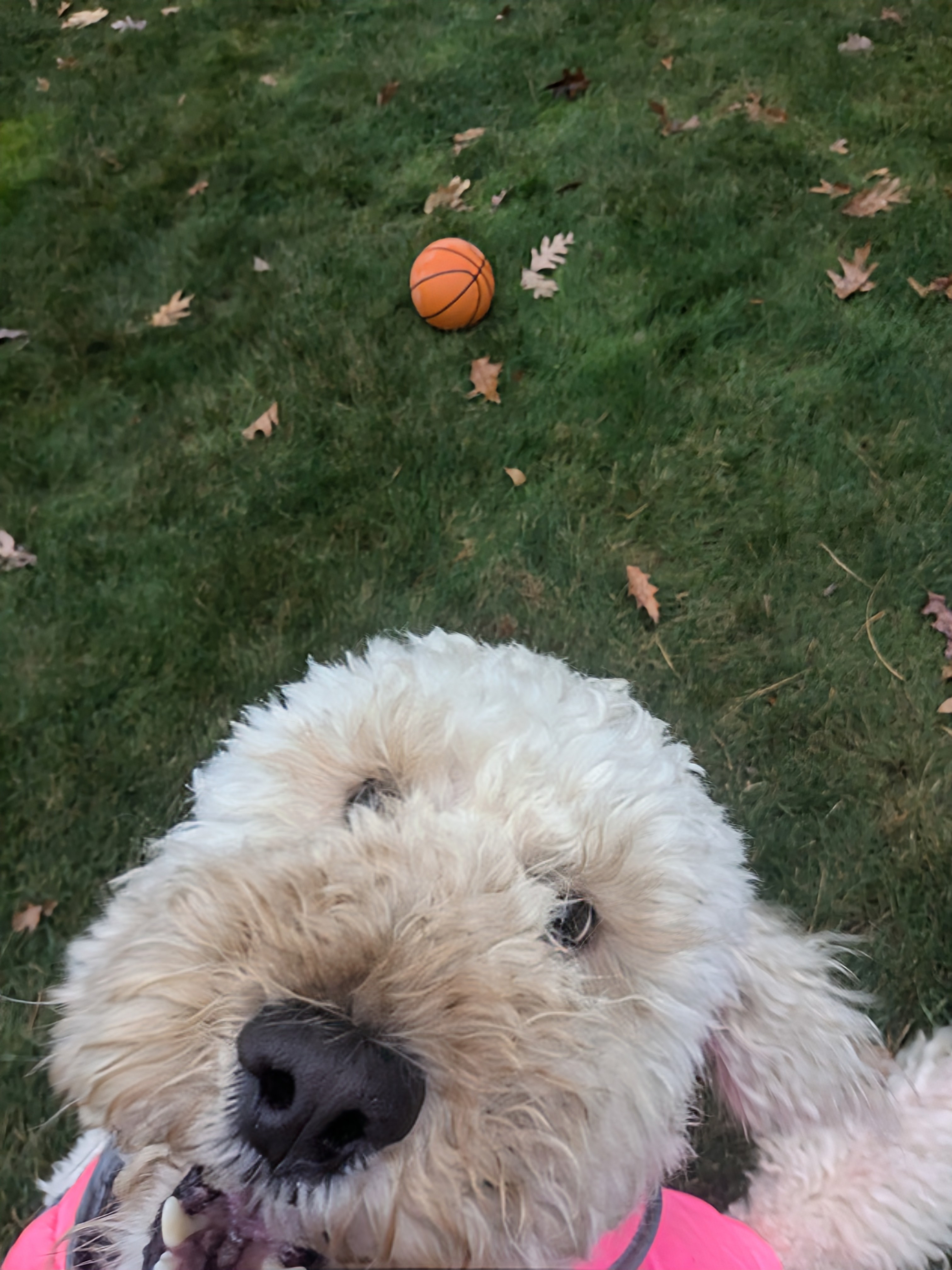 It was weird to walk in the rain today, it’s been so long! We enjoyed our walk, searching for the tastiest puddle and chasing the falling leaves and acorns. When we got back to the yard Millie wanted to play Frisbee so we did in deed! She was flying through the air catching ALMOST ever toss! It was awesome even on this gloomy weather day!