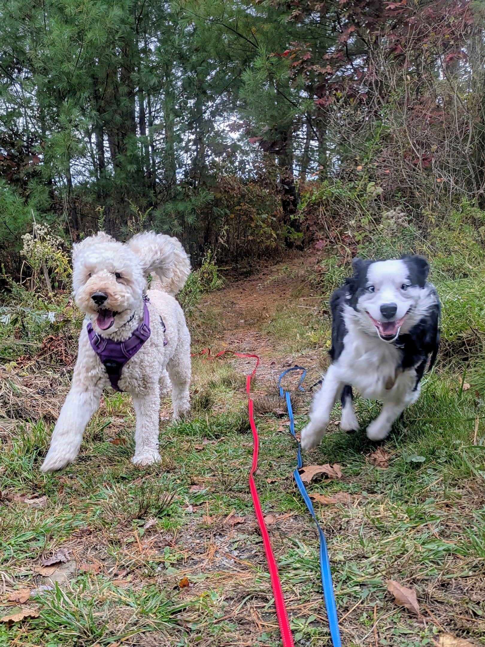 Millie didn’t want to get in the car today, but the curiosity of who she would see today got the better of her. To her Surprise she arrived at Sophie’s house and the both of them went for a ride to the trail! ๐ When they finally got out they spread out to enjoy the cool sunny day. Sophie wanted to play but Millie was playing it cool, above the same puppy antics she still pulls on others. ๐ So Sophie did her own thing, playing it cool herself. But when it was time to turn around they both gave into their puppy side and broke out into spontaneous games of tag. Once Sophie proved she could be cool, she was in! ๐ฅฐ