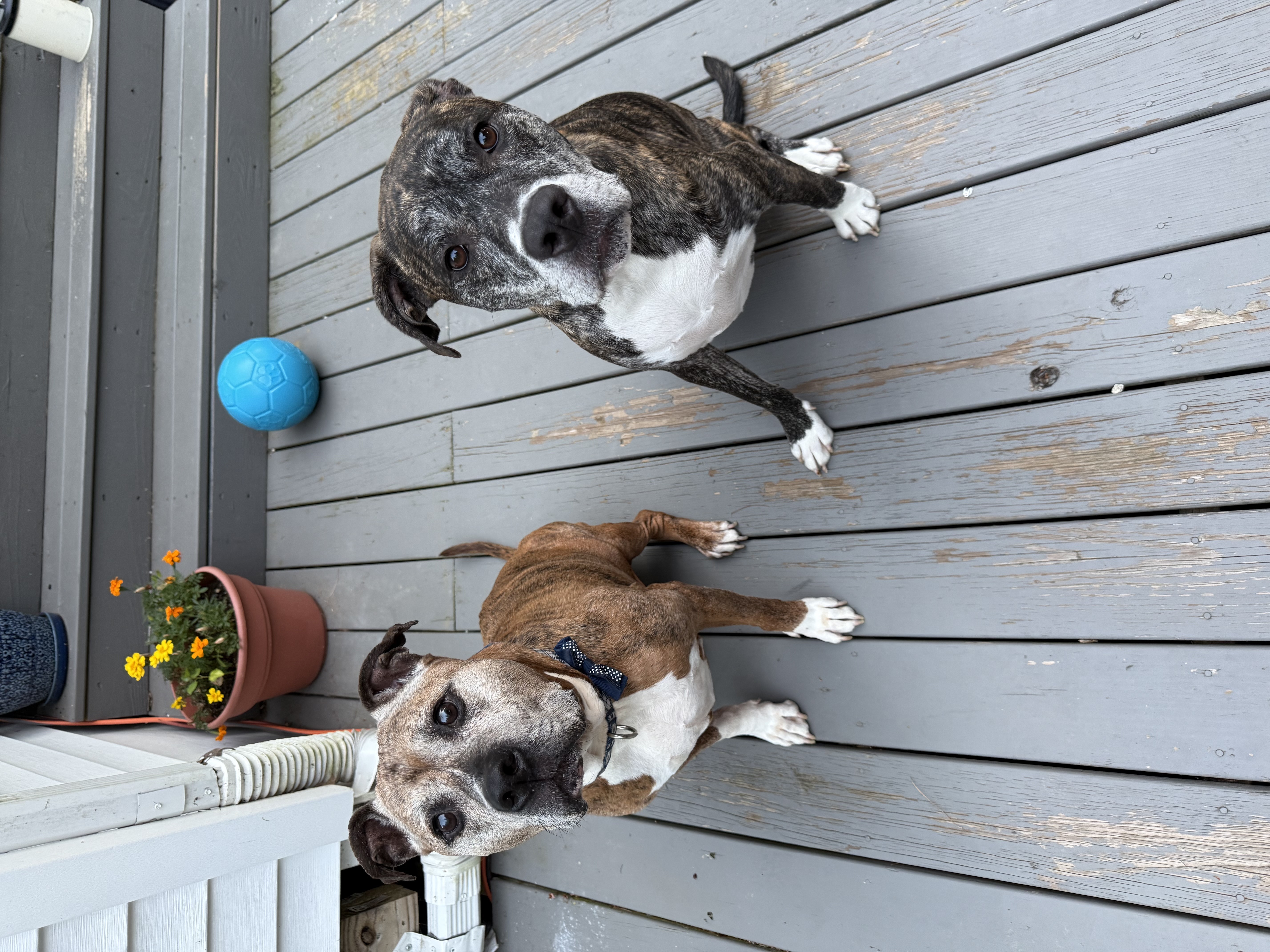It’s such a beautiful evening I took the kids to come sit on porch outside. Saga and Corey are taking turns messing up a blue ball and Mav is watching from the window. Saga is so super sweet and courageous. Corey likes to chat about how many treats he should get and likes to stomp his feet around about it. I got to give it to him the man knows what he wants! 😌