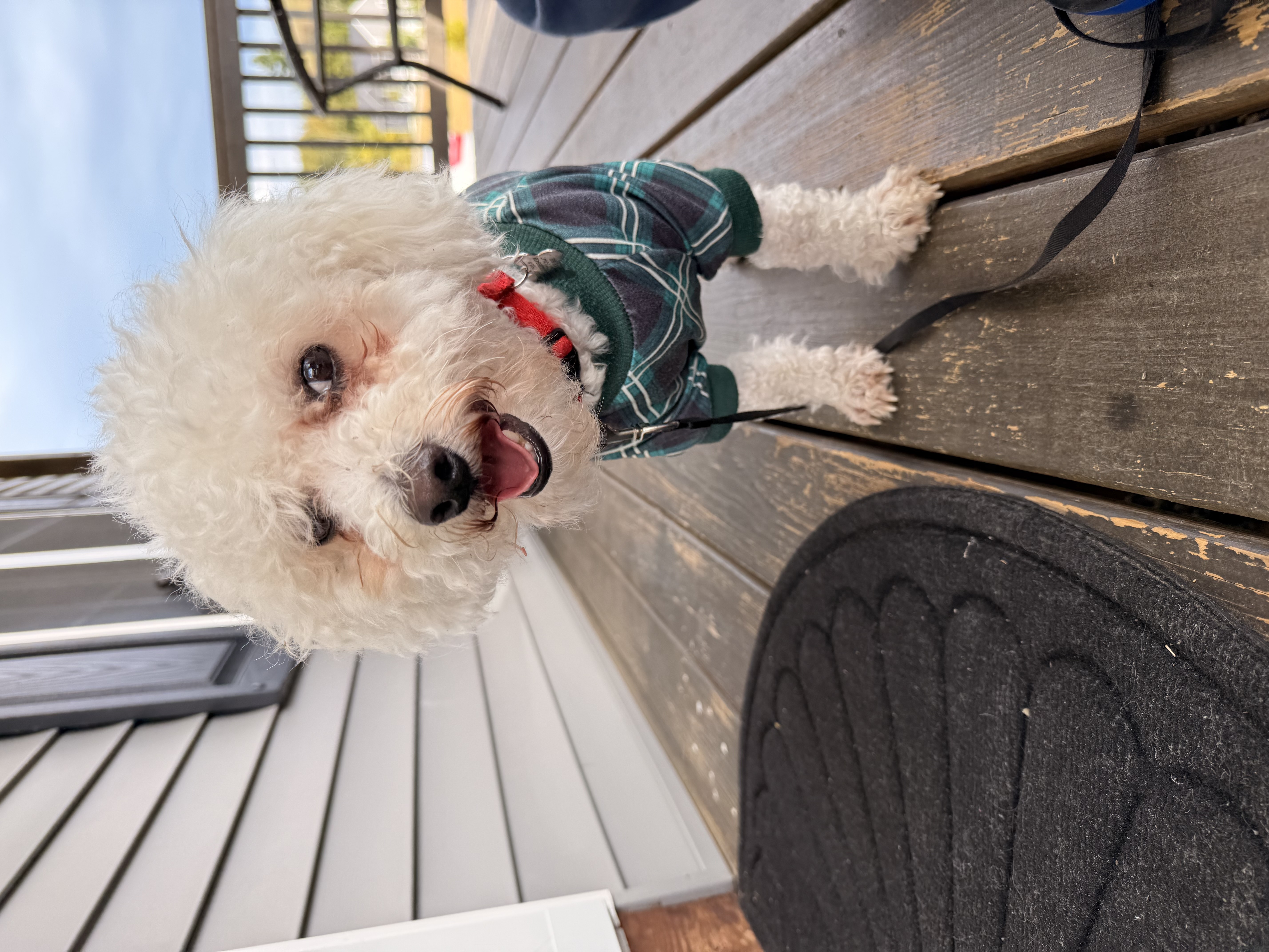 Today our walk was very quiet. Usually there is contruction and cars driving by but not this morning. Just the sound of a light breeze. I realized after walking for a bit that I dropped my phone on the porch and forgot to pick it up. Mylo and I just hung around and walked with no distractions! I snagged a few cute photos before I left🥰
