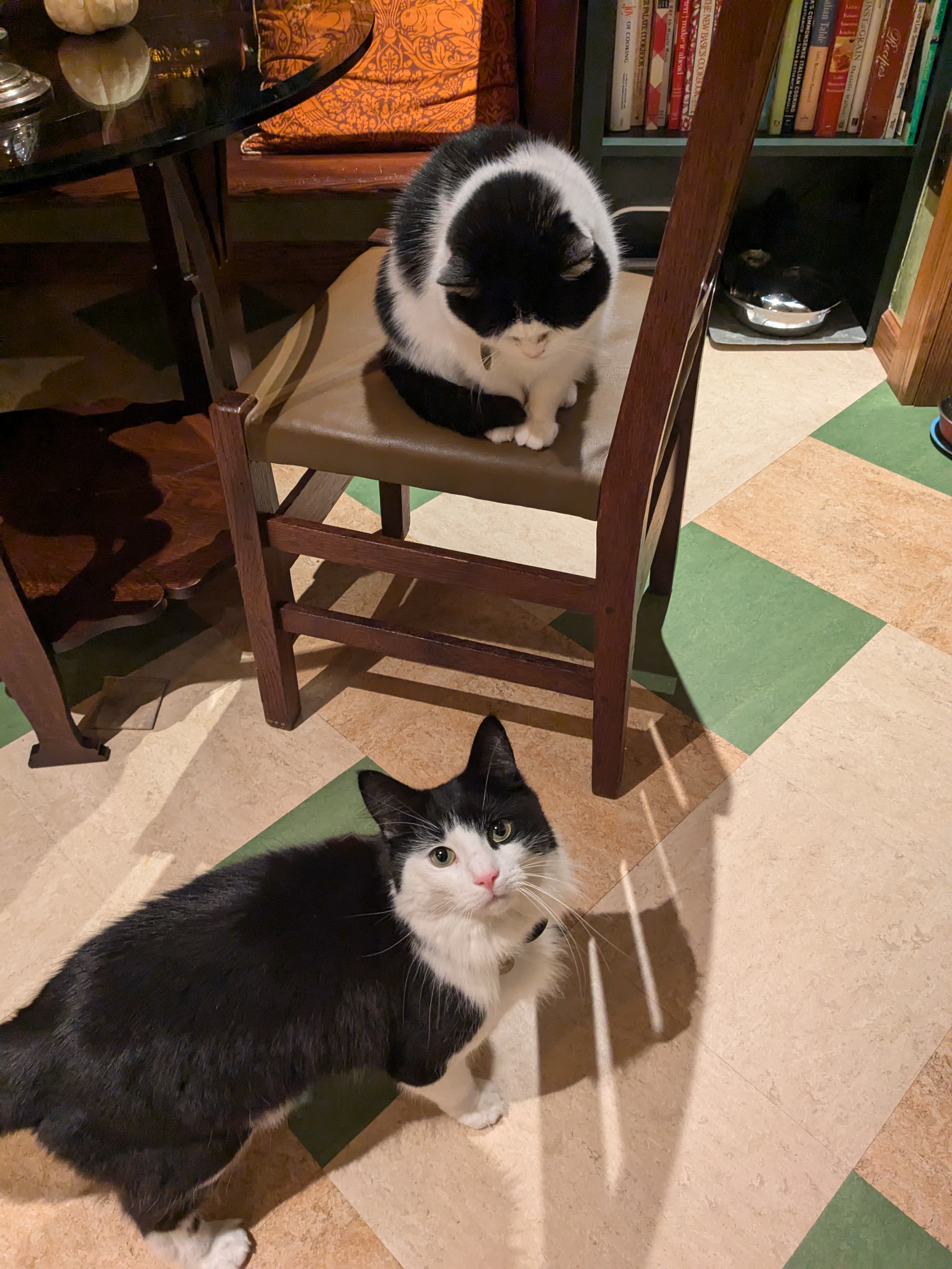 I was so happy to be able to sit Wallace and Cookie again so soon! They were their adorable selves of course. Cookie kept her distance at first but then came to me for some love while Wallace ate dinner then They swapped and Wallace and I played with some toys and climbed his cat tower for the perfect view. I am so happy to be spending the next few days with them! They give me the warm Fuzzies! 😻🐼😻