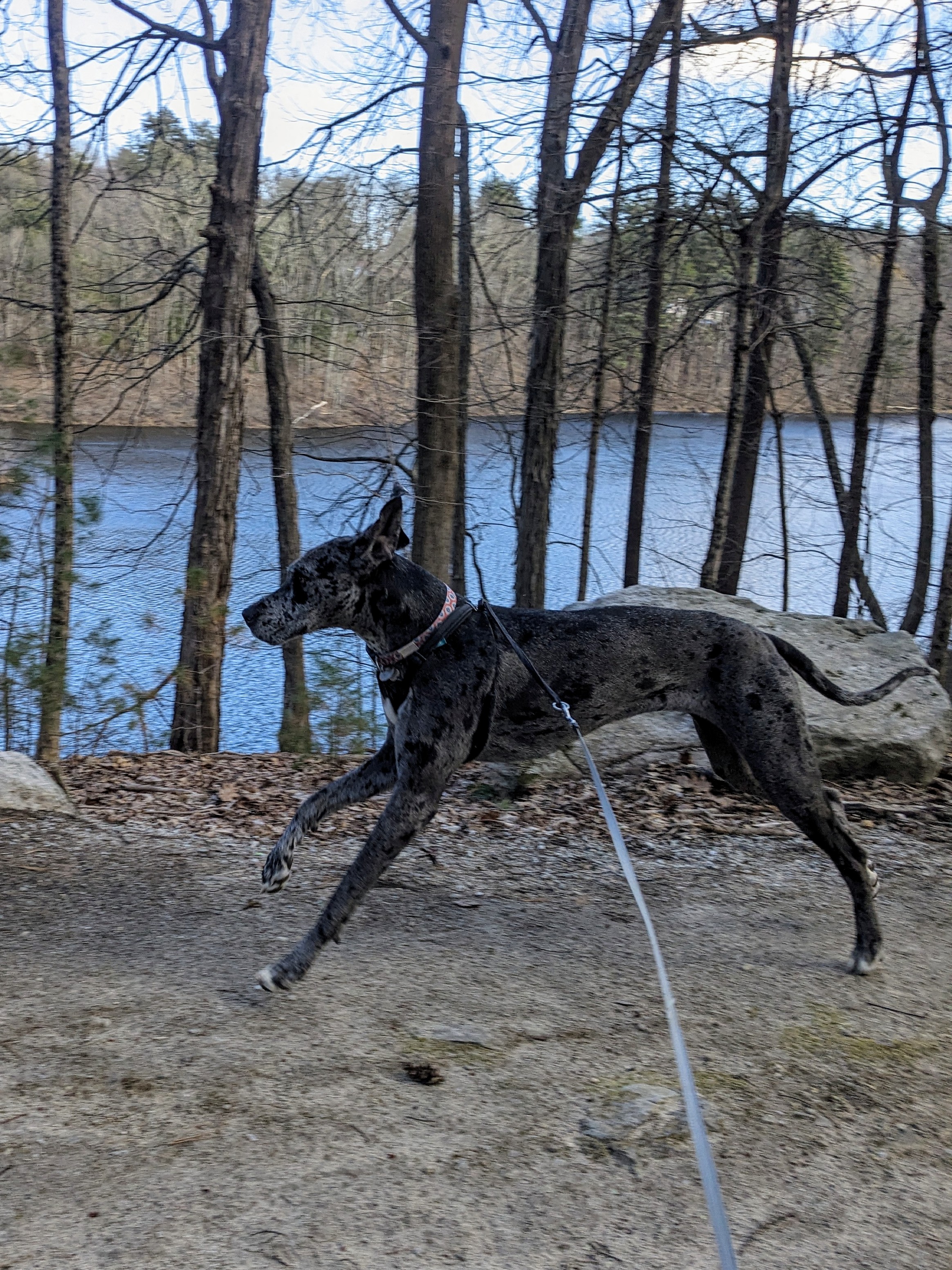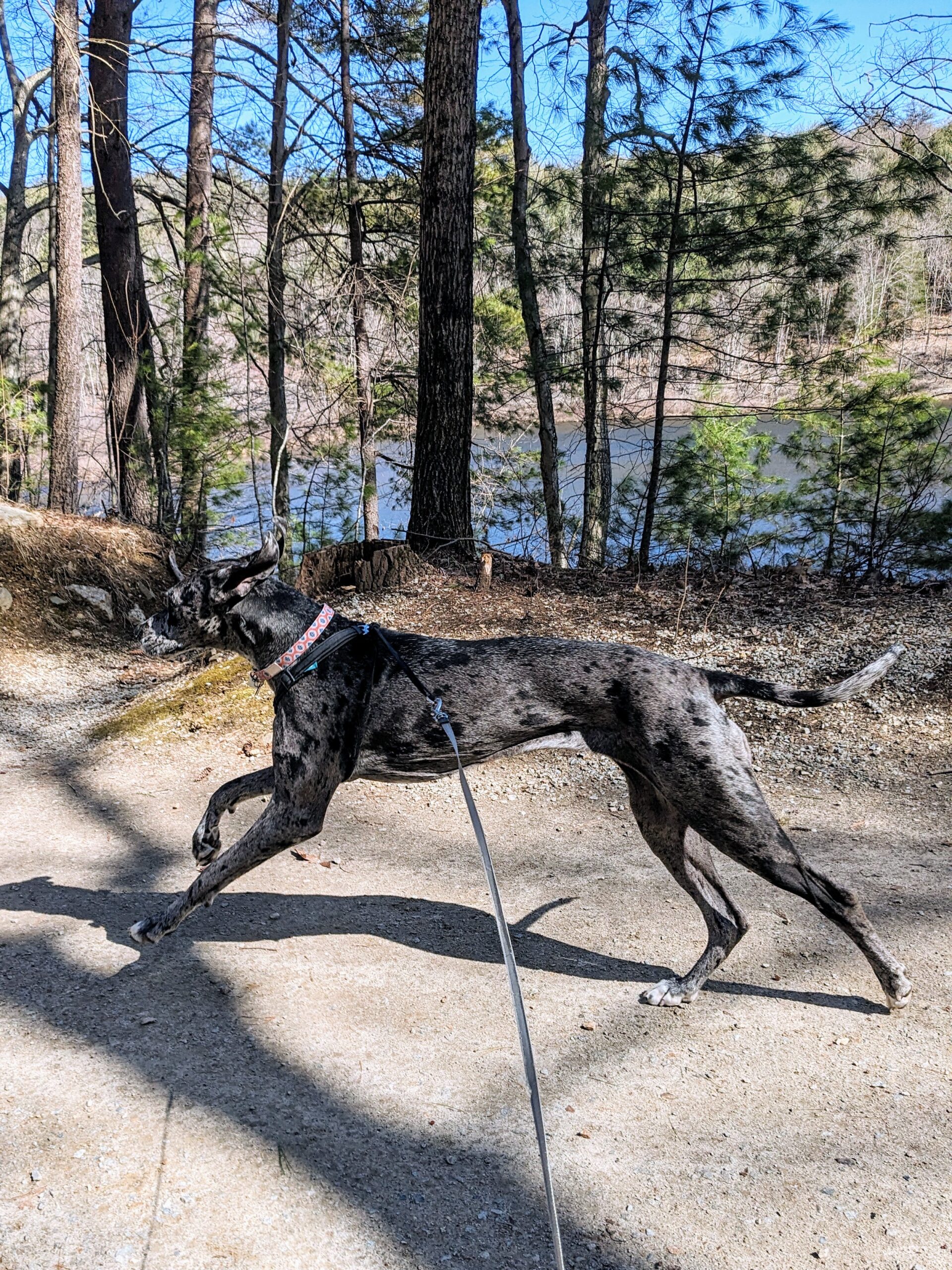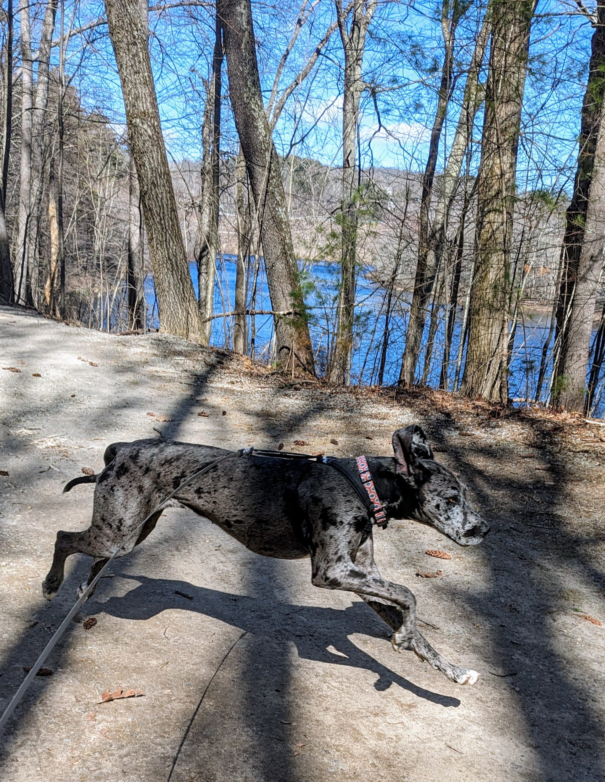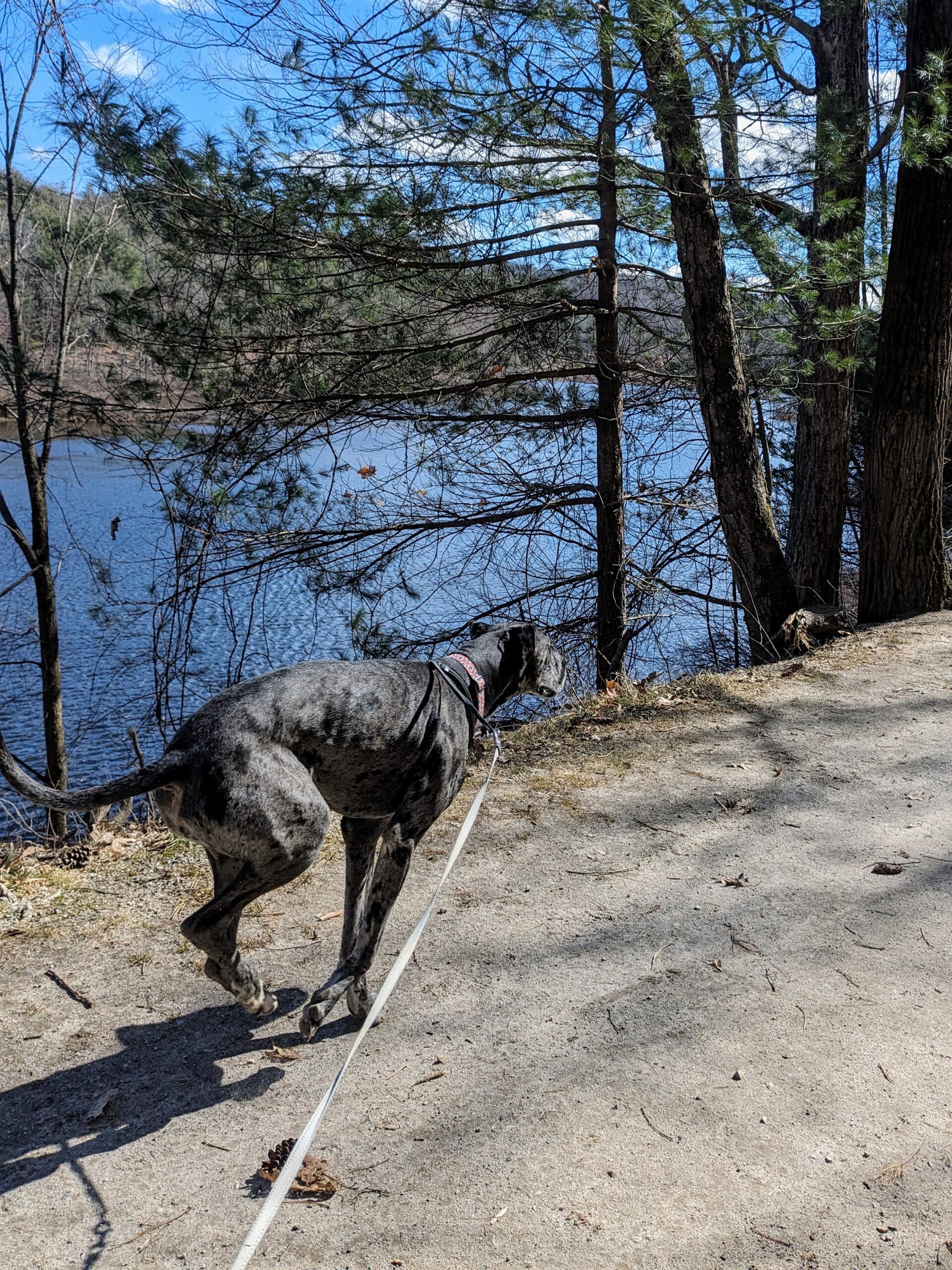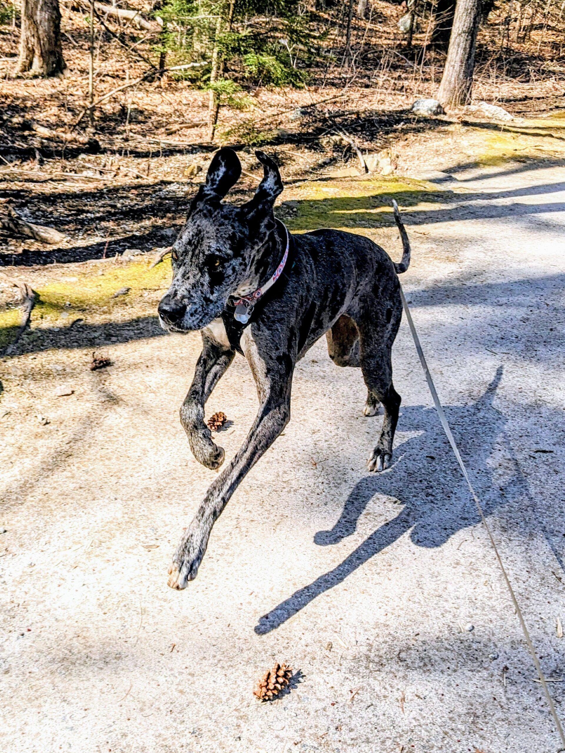 There was so much joy in the girl today she could NOT keep it in low gear. She had to stretch her legs and get her sprint on. Kindly she kept just inside the leash limit (and speed limit!😂) and spared me any pulling or jerking. But it wasn’t just running, she was eagerly zipping from place to place following scent trails. She would pause at a tree or a bush and eagerly read it from cover to cover. She should be nice and tired after our adventure. Maybe she’ll sleep, and dream of smelly things. 🥰