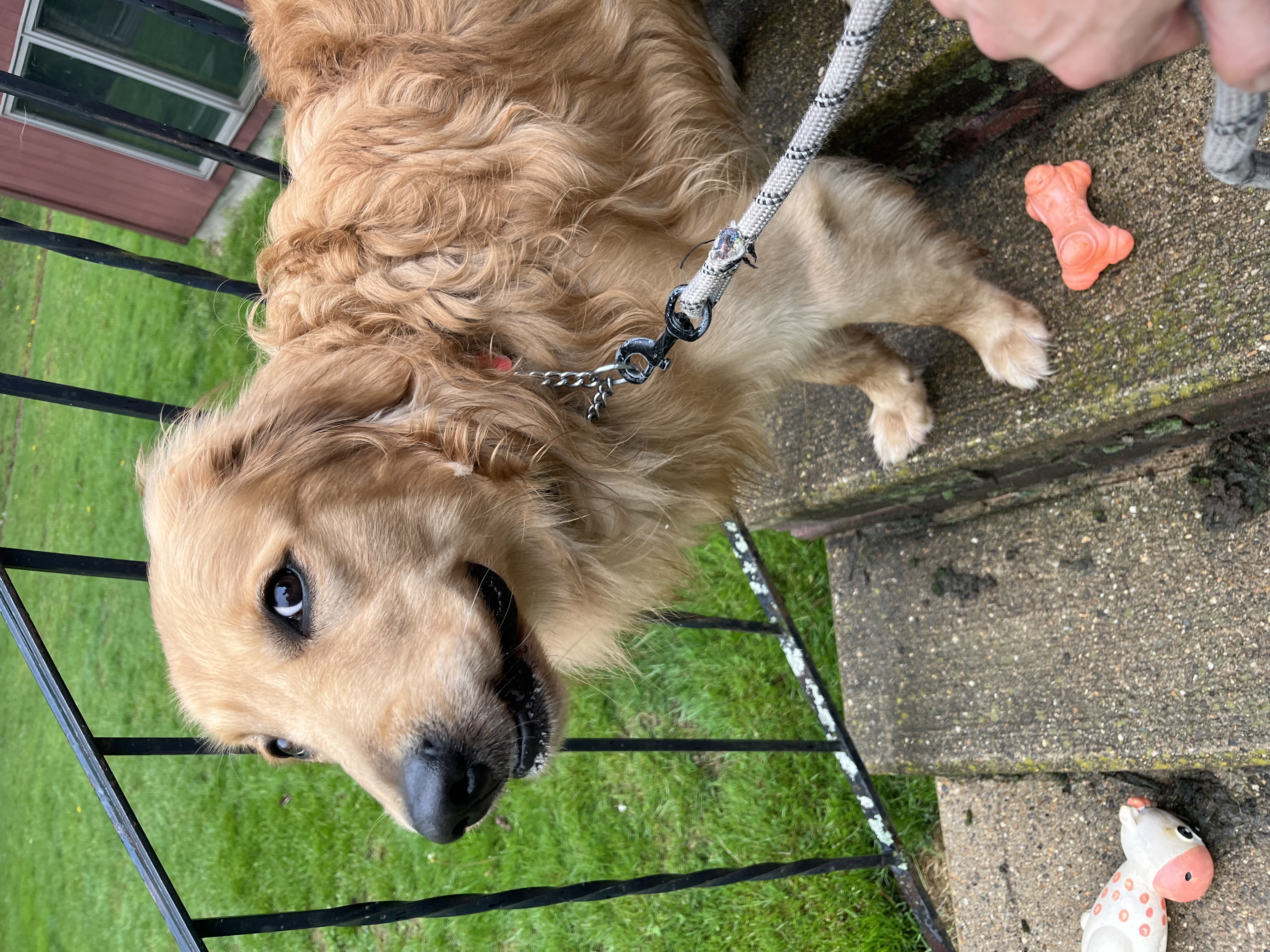 At the end of our time we practiced going up and down the stairs. At one point he stopped to sniff railing 🥳 he would check in and would wait until