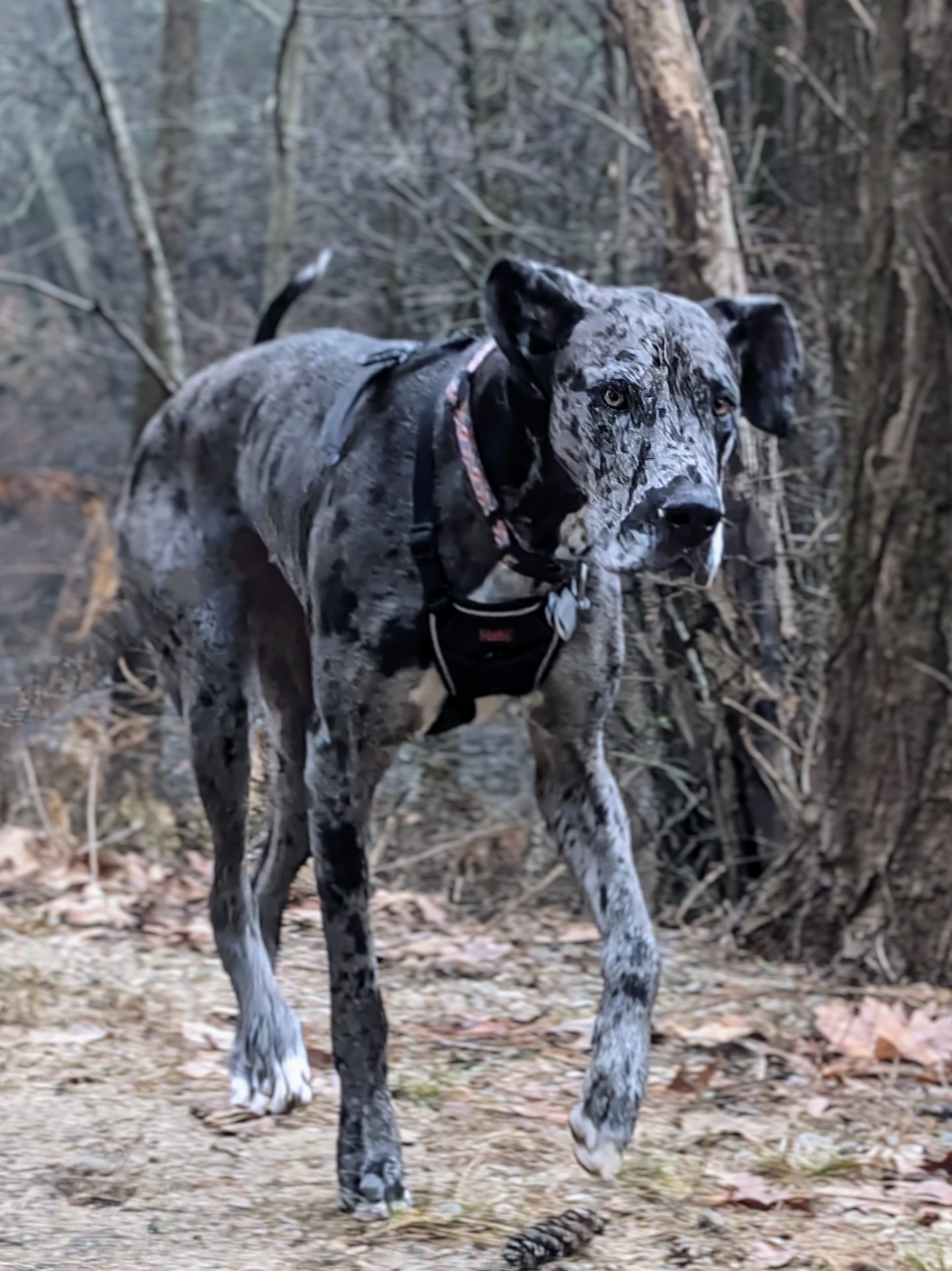 With the dense fog, Koda and her beauty and sweetness made our walk even more beautiful! It’s so nice to have the park back to semi-normal now that the water has receded. We did lots of sniffing and running around. We said hello to the friendly folks enjoying the mild weather too! Because of the flood last week, there were a few obstacles to maneuver around on the trails but that just made for a more exciting adventure!