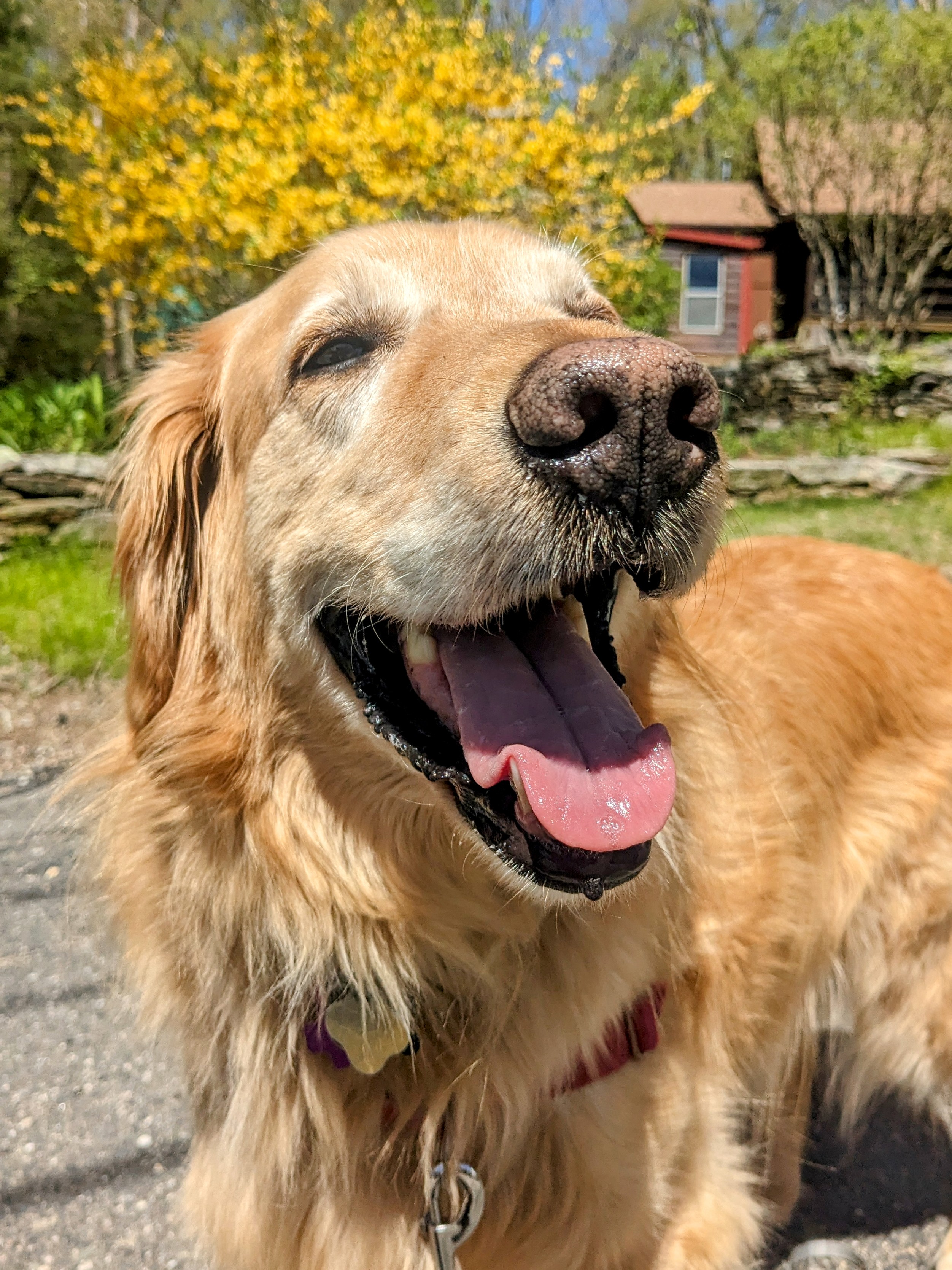 Julian and I were enjoying the beautiful day, walking the neighborhood. I took out the camera to snap a pic and Julian stopped, quarter turned, smiled. He makes it so easy. He likes to help set up the shot, he’s very aware of lighting, and always makes sure I shoot his good side. Make sure you get the sunny side up, he says, and then poses like he just HAPPENED to be smelling a flower. He may be a diva, but he works for treats!