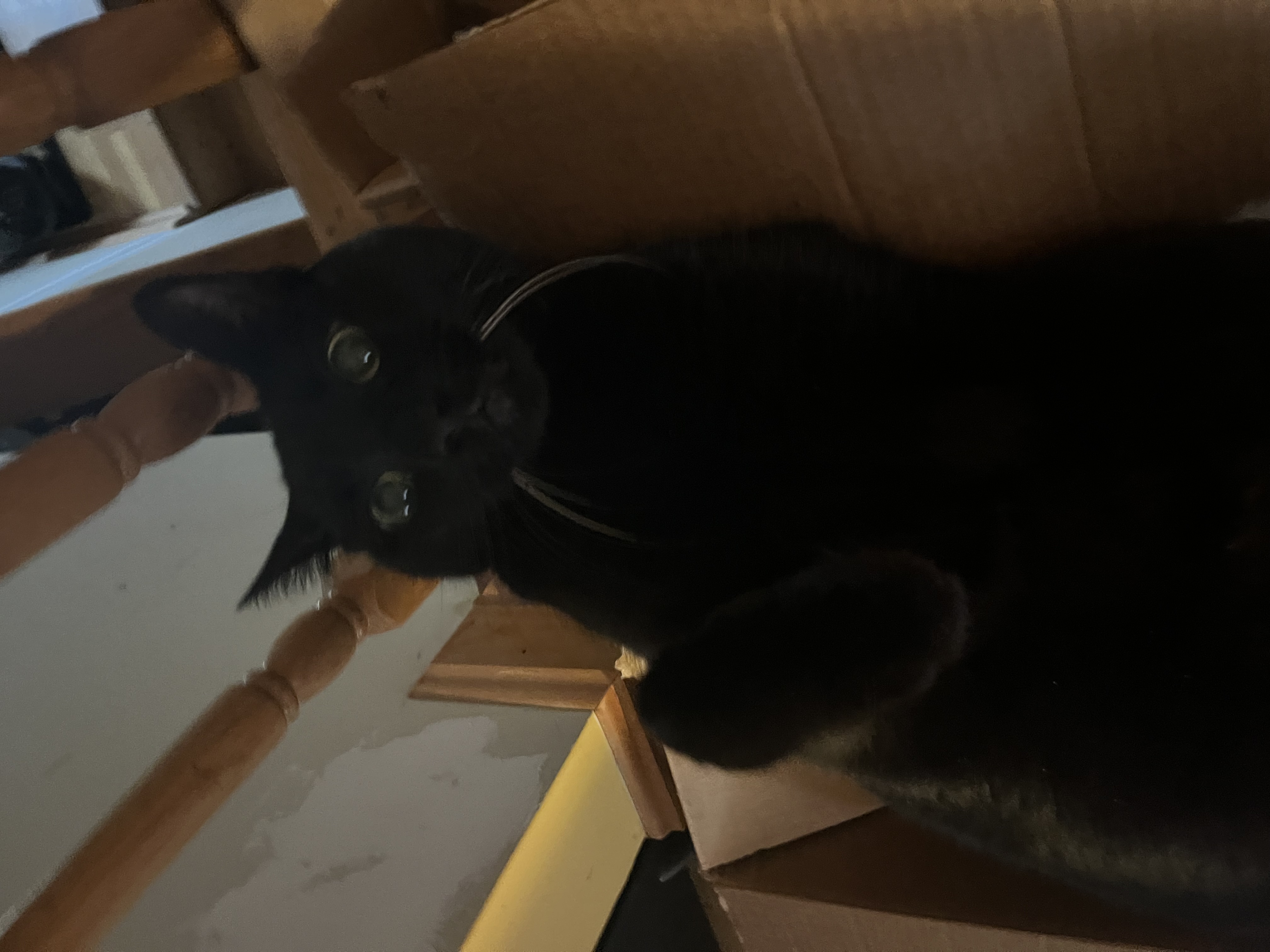 Cash greeted me at door again and we danced together to the free ate up his wet food while I took trash out & cleaned up litter boxes. We had a great play sess ! Your neighbor is having tree work done so Cash was a little on edge today with all the noise going on. I tired him out with play time and of course ended with snuggles well scratches❤️🐾