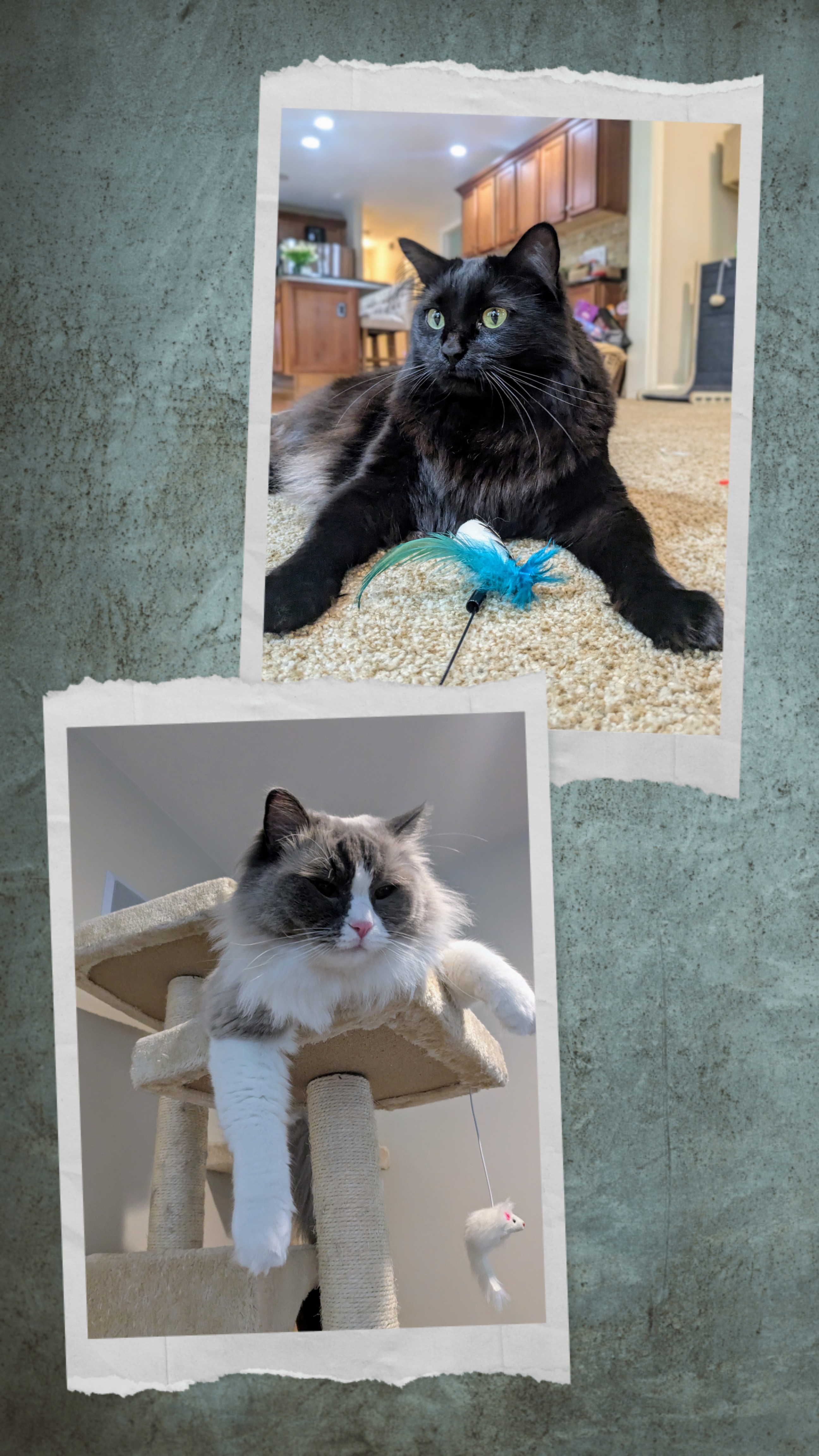 Elvis and Toby were extra affectionate this morning. They followed me around and asked for lots of pets. I thought it was a little suspicious to be honest!🤔. But hey I love these two so extra love was easy to give! It wasn’t until I went upstairs to clean their litter box when I noticed what trouble they got into last night! They knocked over a plant in the bedroom and the moss was all over the floor as well! So I looked at Elvis, who made the point of staying in the hallway and he said it wasn’t him, it was all Toby! Toby hadn’t made it upstairs yet, (so I thought) so I finished cleaning the litter and then went to clean up the mess. But I when I approached I saw something moving in the branches and wouldn’t you know, it was Toby! He was very proud of his cool new tree hide out! He of course blamed it on Elvis but since it was on the floor, he would play jungle kitty! Hmmm? 🤔🤣 Honestly I think it was a joint effort because they are the ultimate furry toddlers the furry partners in crime! They just love to blame each other! It made for a very fun breakfast visits! These two are awesome! Can’t wait to see what trouble they get into next time I visit! 😻❤️🐾 (Disclosure: tree is back in its place and all cleaned up)
