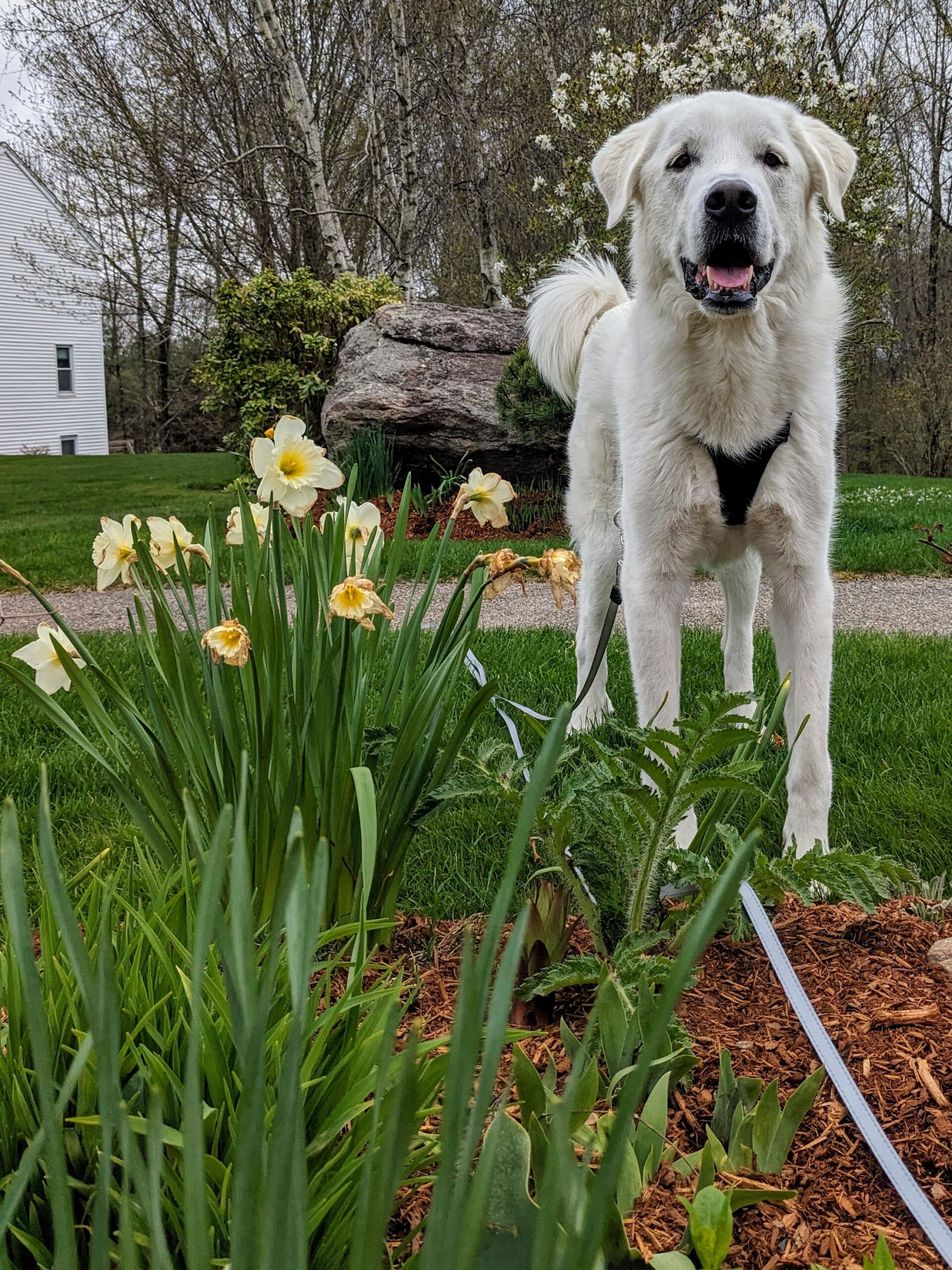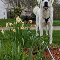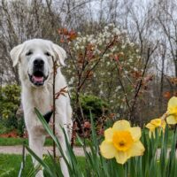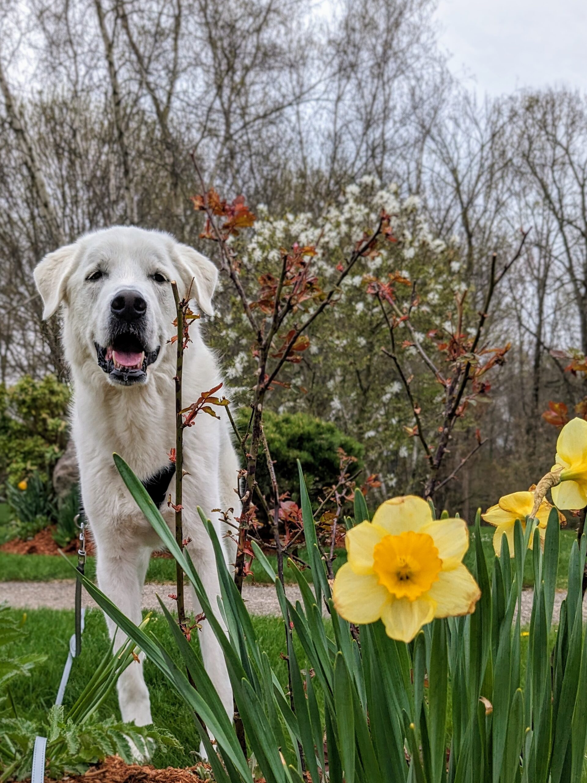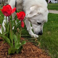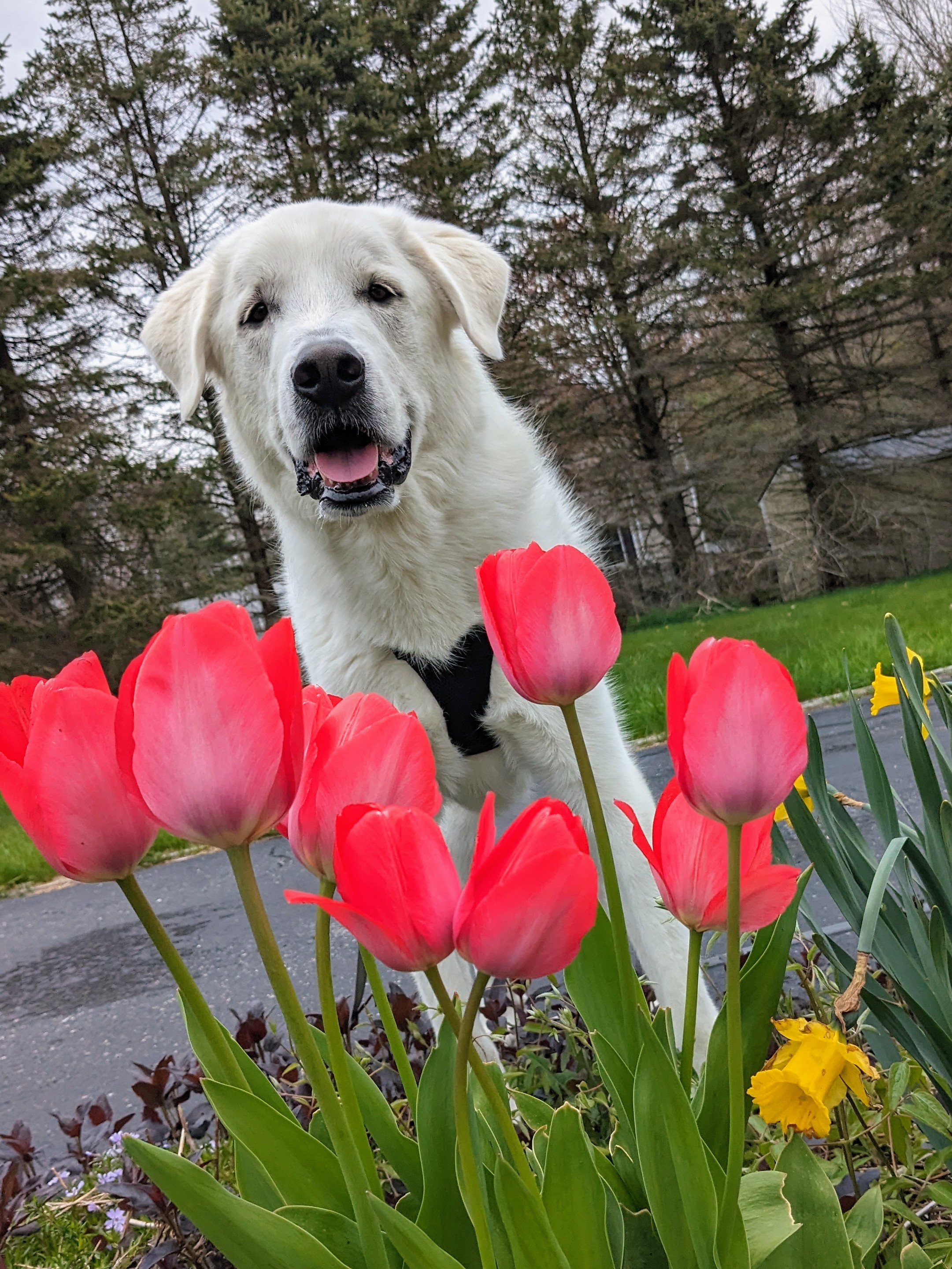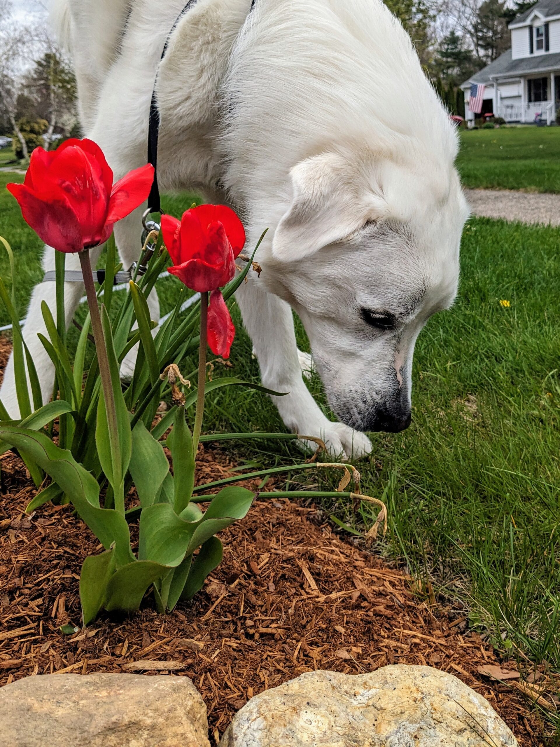 It was a warm afternoon and the blooming flowers added some welcome color to our walk. Mugs was very interested in investigating every one of them 🥰 though I had to stop him from leaving his mark on them a few times. At one point he got to some pretty red flowers and I told Mugs he was their favorite. He didn’t believe me but then I said, who lives Mugs more than tulips? 😂