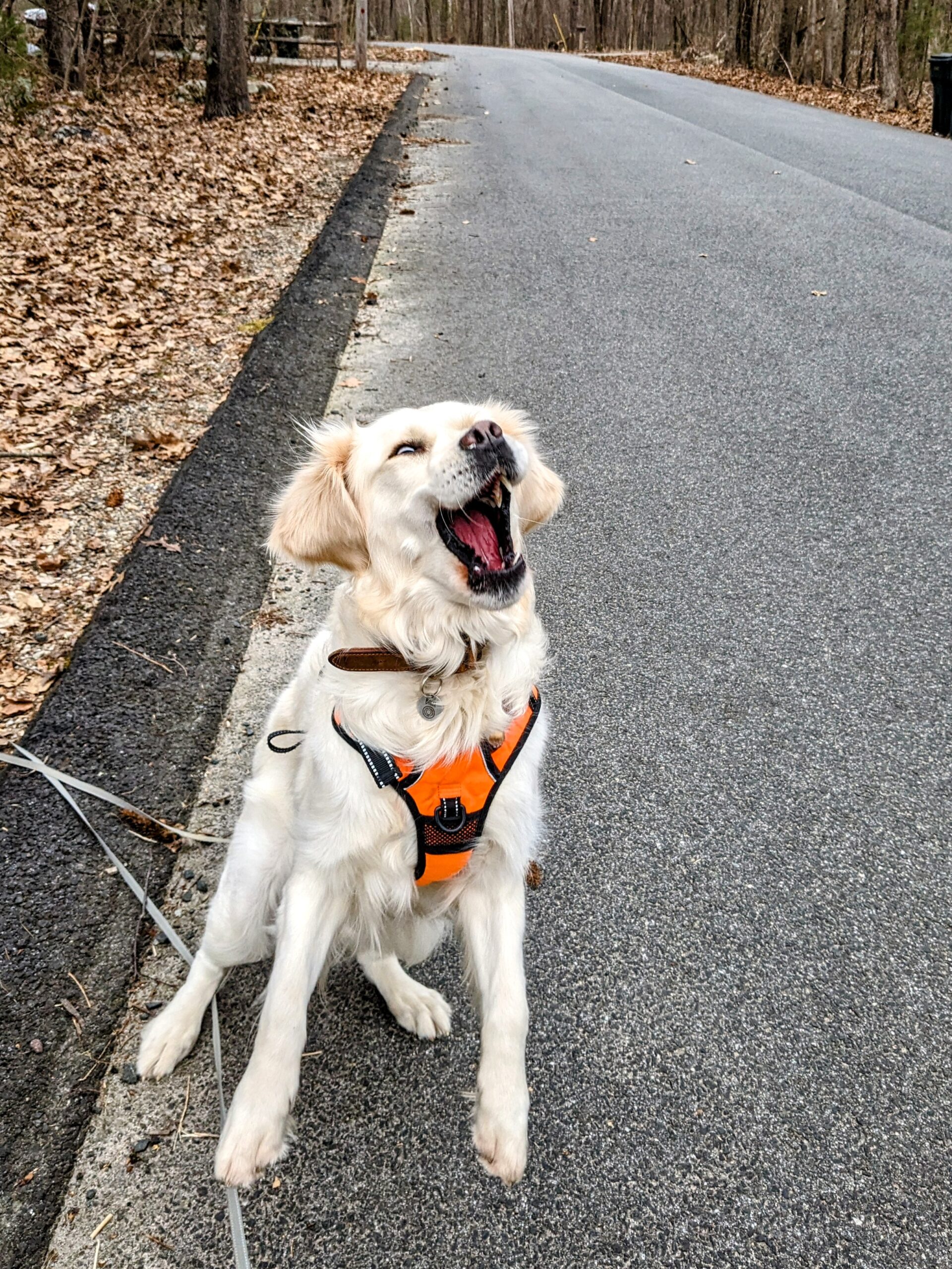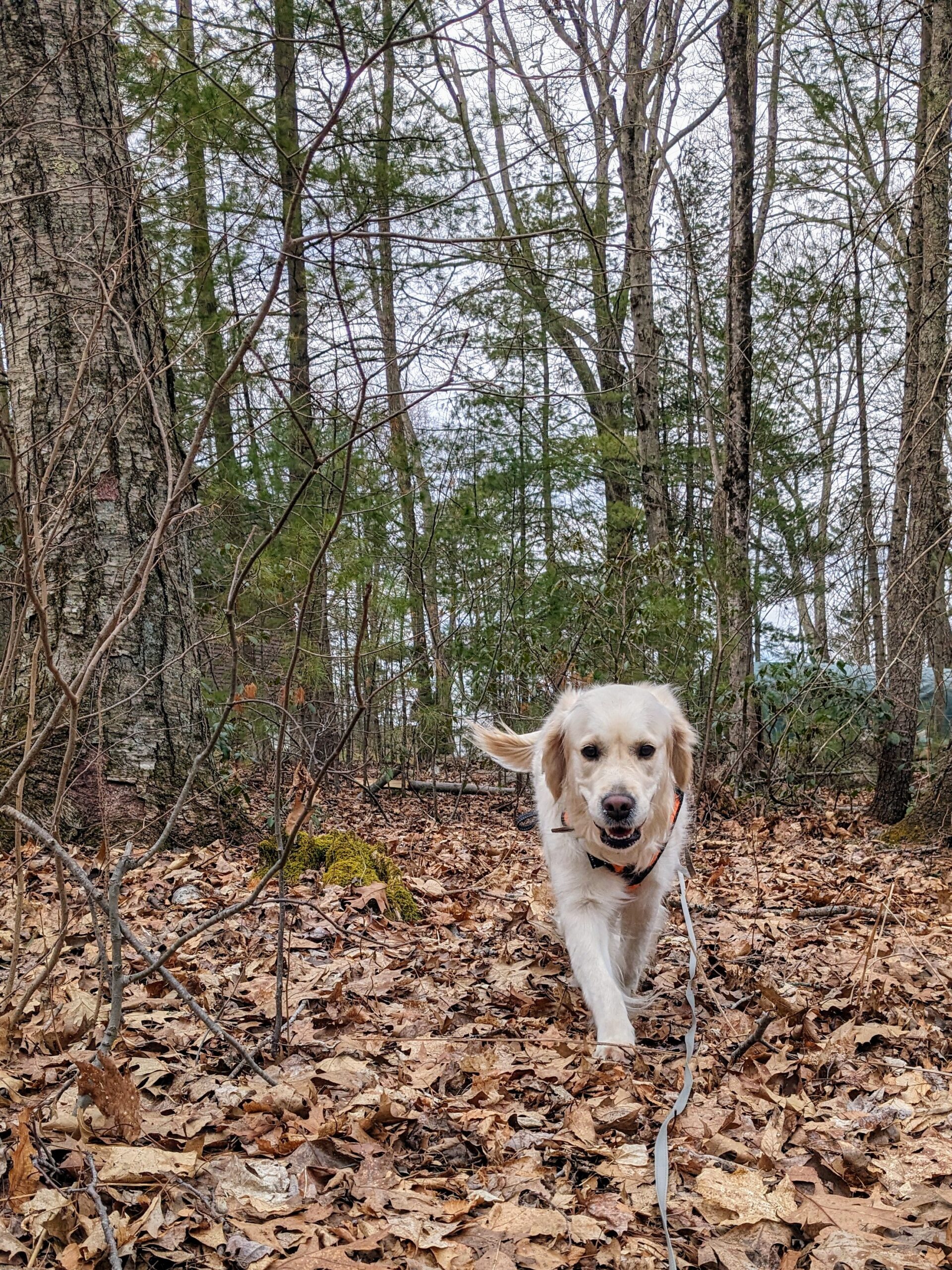 A 20′ leash means Bagel has 1250sq feet of freedom when we go for a hike. As long as she’s doesn’t get up to trouble, she can go at her own pace, check out whatever she wants, and run around when the urge strikes. And as a puppy 🥰 she took full advantage. There were sticks to chew, leaves to chase, and so many smells to dig up. News of spring is exciting in the animal world too, apparently. And when it seemed like she might need a warning, a word or a whistle is all it took. Good puppies get to say hello to people too, and she made lots of friends on our hike too.☺️