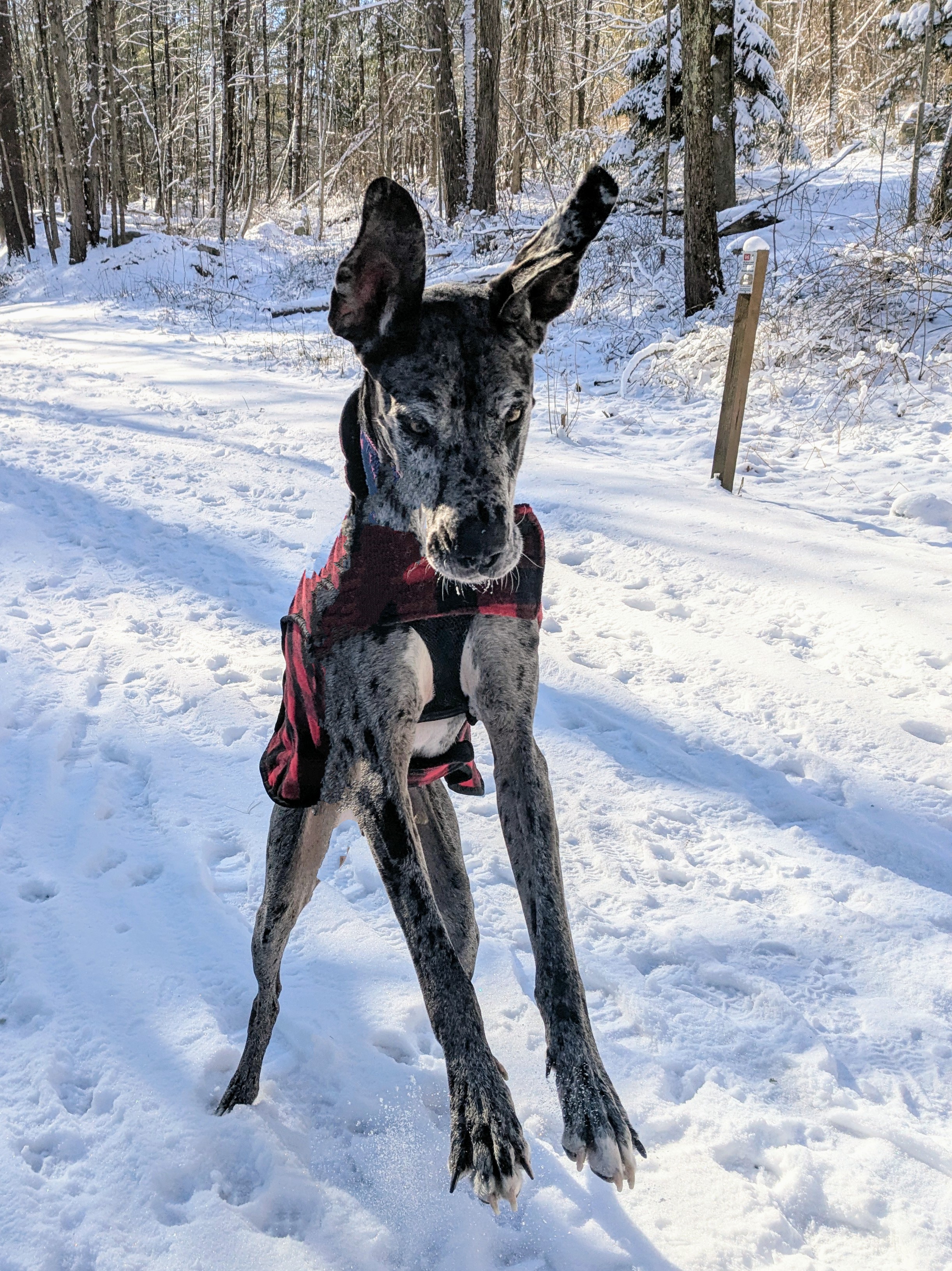When Koda and I arrived at Westville, we knew it wouldn’t be very busy with the temps so low but we’re actually shocked we seemed to be the only ones there! We both looked at each other and Koda jumped up and down knowing that we had the place all to ourselves to explore! She took full advantage of her long lead, pouncing and romping through the snow! It was so quiet that we only heard birds in the distance. I mean it was sooo quiet you could probably hear a bird toot! 🤣 It was so peaceful. Koda would stop occasionally and Would look up when she heard a “chirp” or a “cheep” trying to find the bird in the trees! I didn’t know she is also a bird watcher! It was delightful to spend some time with her, just her and me surrounded by beautiful nature.