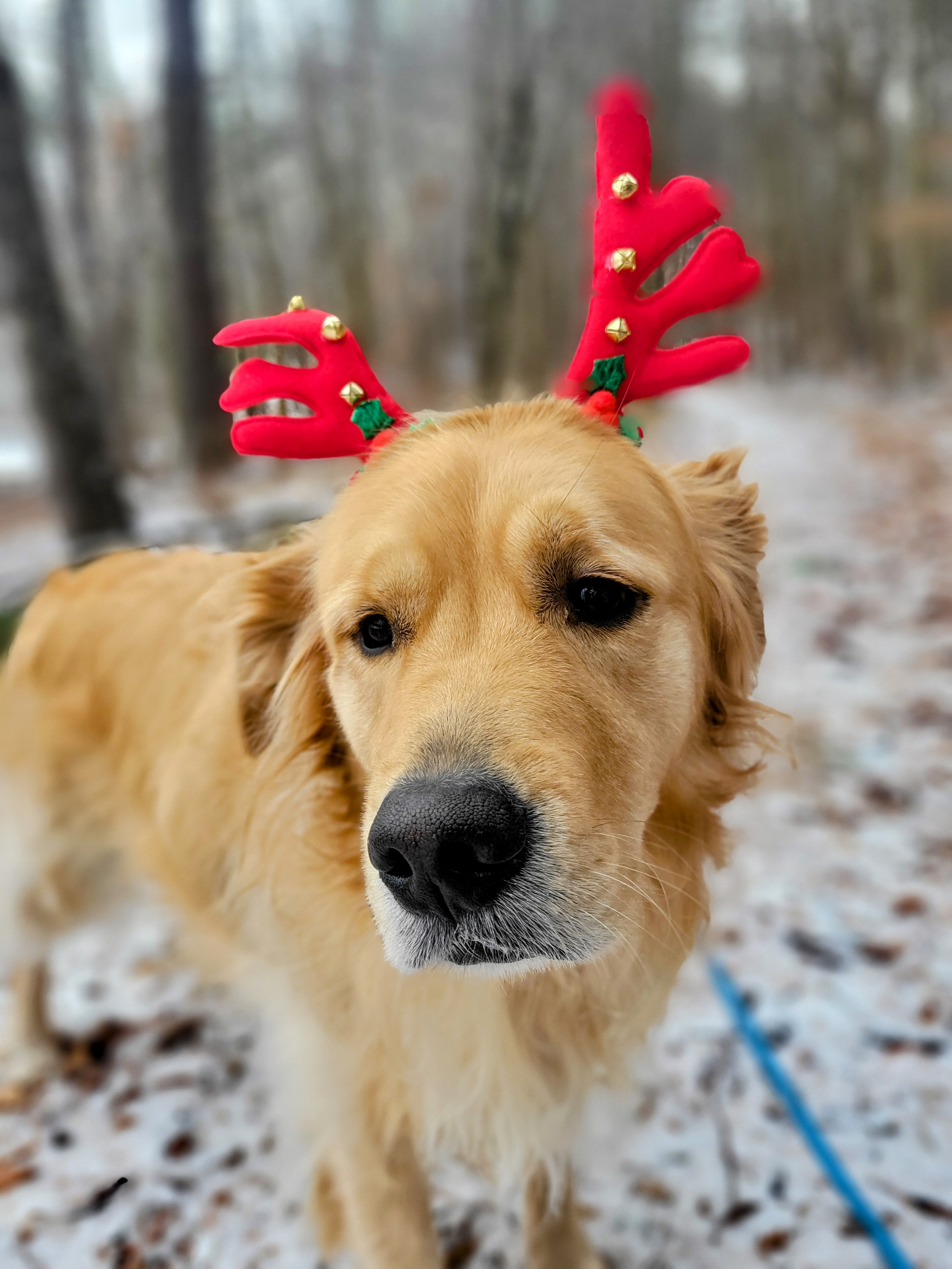 I promised Beau a winter full of adventures and so today I took him to my personal property for an extra long hike. We think the street now has to be renamed to ChamBeaux Road 😂 Beau sniffed all new trails and saw new views and played in the pines 🌲Beau even dressed up like a reindeer (for a whole hot minute 😂).