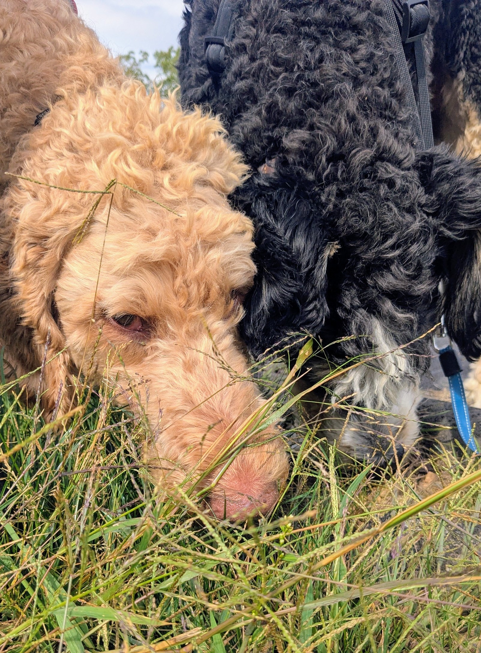 B+B were excited to go out. The sun was shining, birds were singing, and the grass was calling. 😆 We had barely left the house before a couple of other dogs came up behind us from the path. The boys were calm and polite 🥰 but one of the other dogs started growling and we wanted no part of that. We hurried along and soon left them behind leaving us free to sniff and read our pee-mails. Soon there was another dog approaching, and he started angling for us. 😮his Dad said they knew each other and they were friends, but B+B didn’t seem nearly as interested. I politely declined the invitation to say hello, and B+B seemed more glad than disappointed. When you’re the coolest dogs on the street, just because they’re your friend, doesn’t mean you’re their friend. 😁