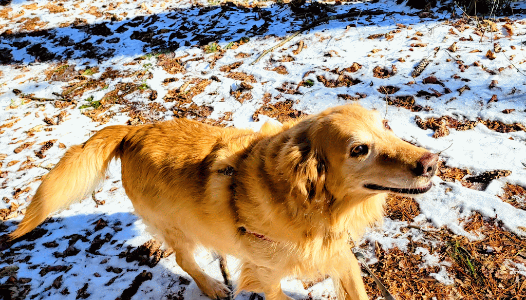 What a beautiful day to be in the woods! A bit windy, but the sun beaming through the trees made it more than okay π We got in our steps and sniffs and very much enjoyed each others’ company! Happy trails and tails to you! β¨οΈ