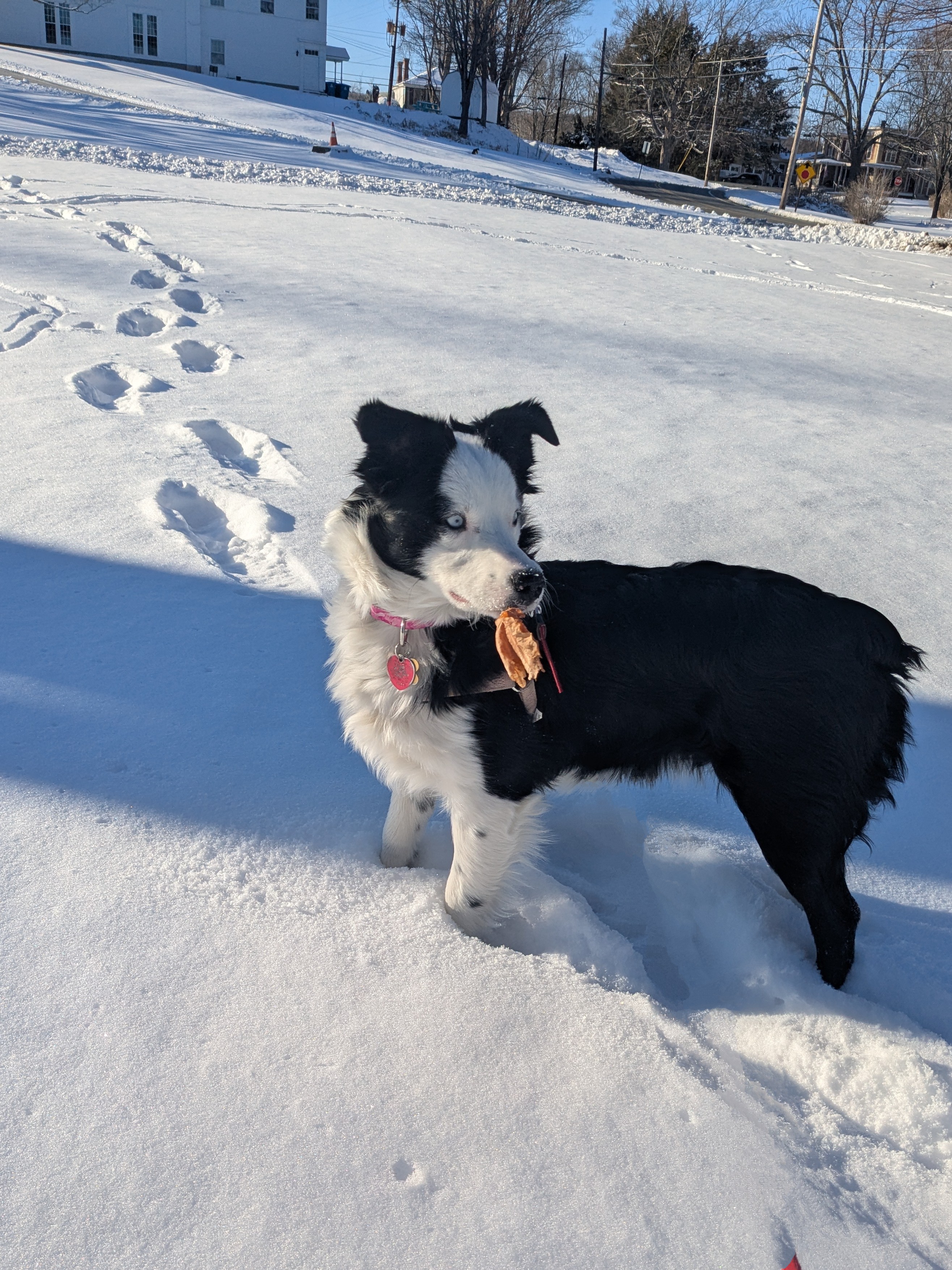 I was so happy to visit with Sophie later this afternoon! She greeted me with sweet kisses and gentle snuggles. That was until I mentioned a walk and well, that tail wagged like crazy and we raced to the door! 🤣 She found every buried stick she could find in the snow and pounce and paraded them around the common for all to see. When all the sticks were accounted for she found a leaf! You would have thought it was the coolest doggie toy on the market! She carried it around, flung it in the air to watch it slowly fall back to earth and then pounce on it again and again! We finished our visits with snuggles and puppy kisses! My heart is full! ❤️❤️❤️