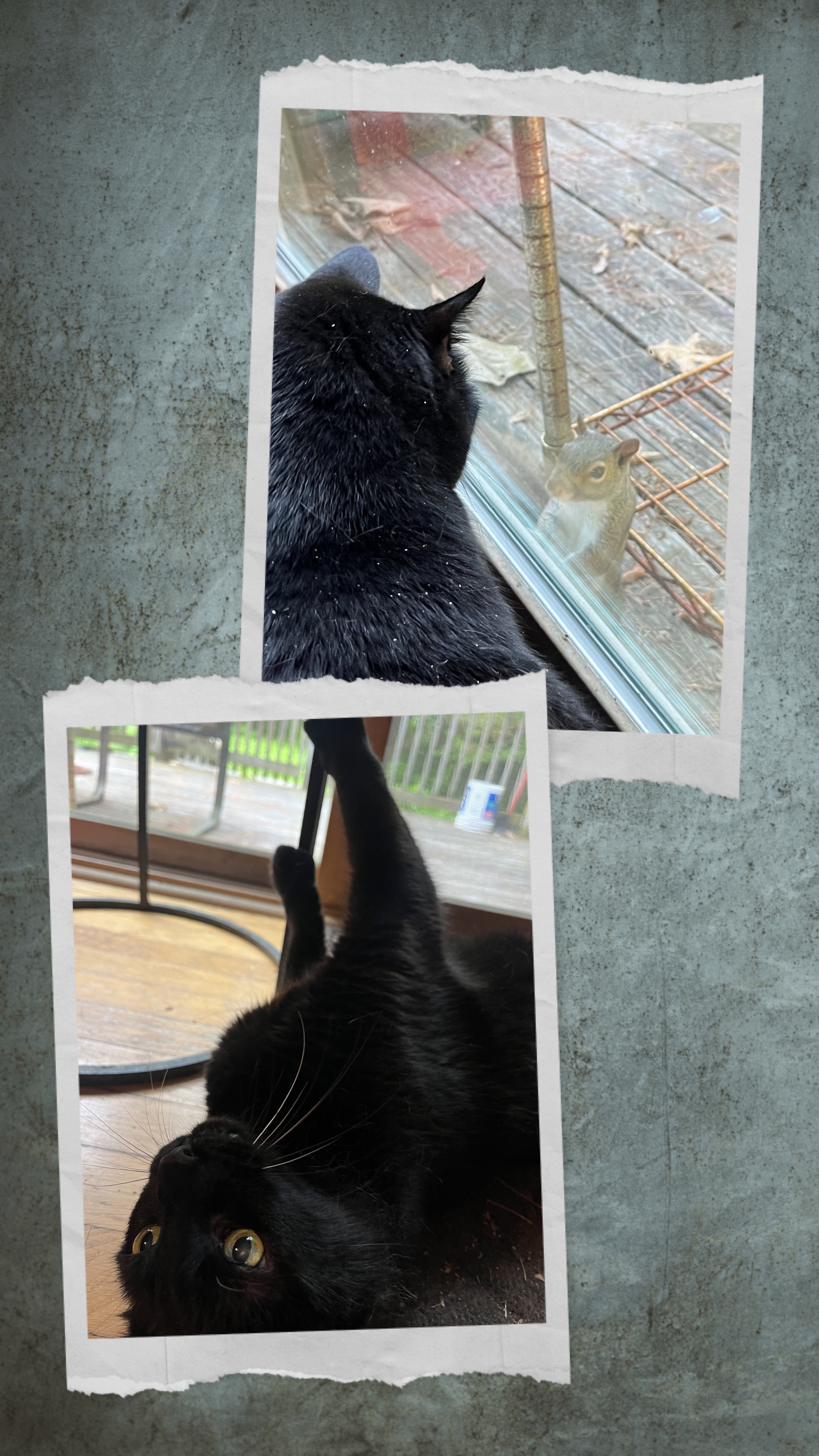 The squirrel & Cash had a stare down then he pawed at the door and our unexpected visitor took off.