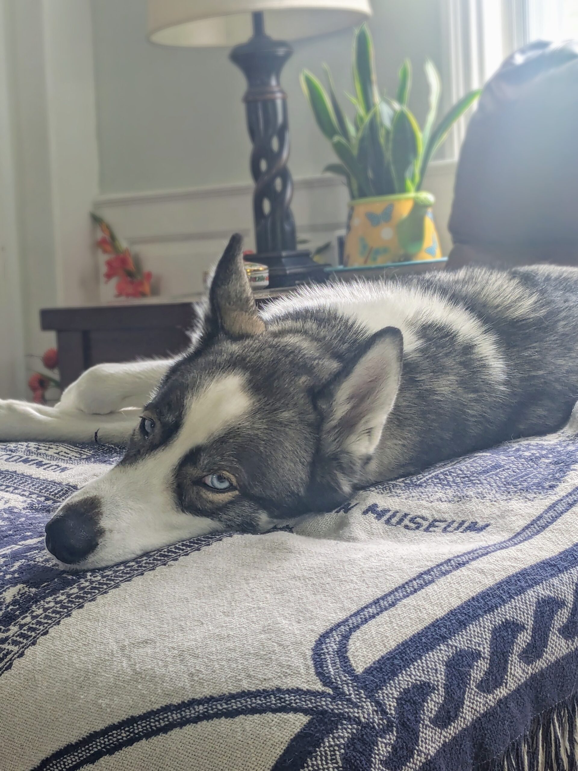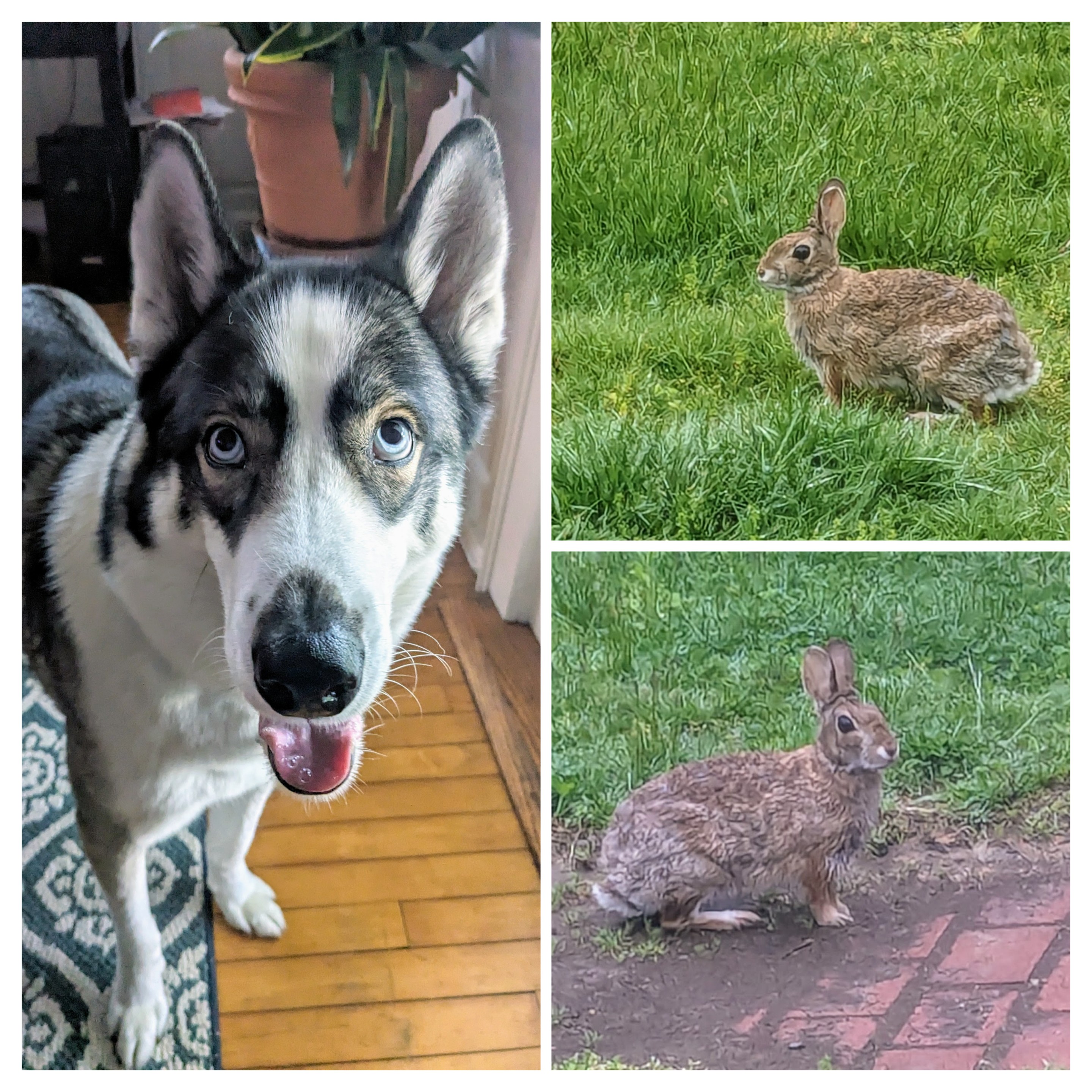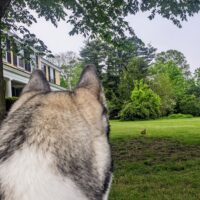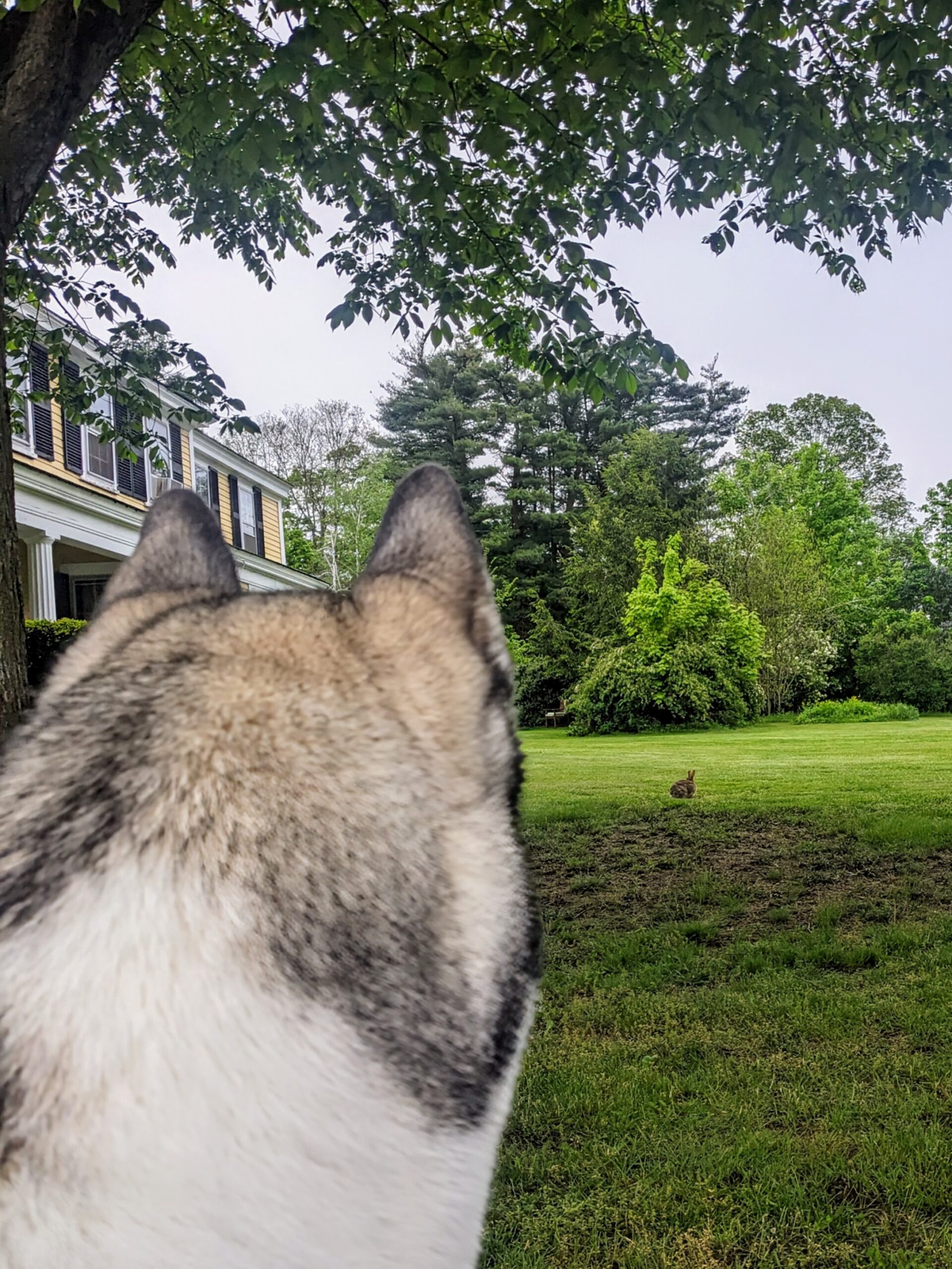 Packer was thrilled to come over, even though he wasn’t clear on why we brought all his stuff. He settled right in, playing with toys and watching the people walking around outside. But by far, his favorite part is all the bunnies in the neighborhood. 😊 They let him get pretty close to them before hopping away. And once they start hopping, their fluffy tails are the bouncing ball Packer HAS to chase. I’m well planted in the ground against his pulling by then. But I love to watch him get close, sit, and just observe them. He’s so curious! 🥰 I’m sure he’ll have lots of opportunities to learn that bunnies are friends, not for chasing! 😆