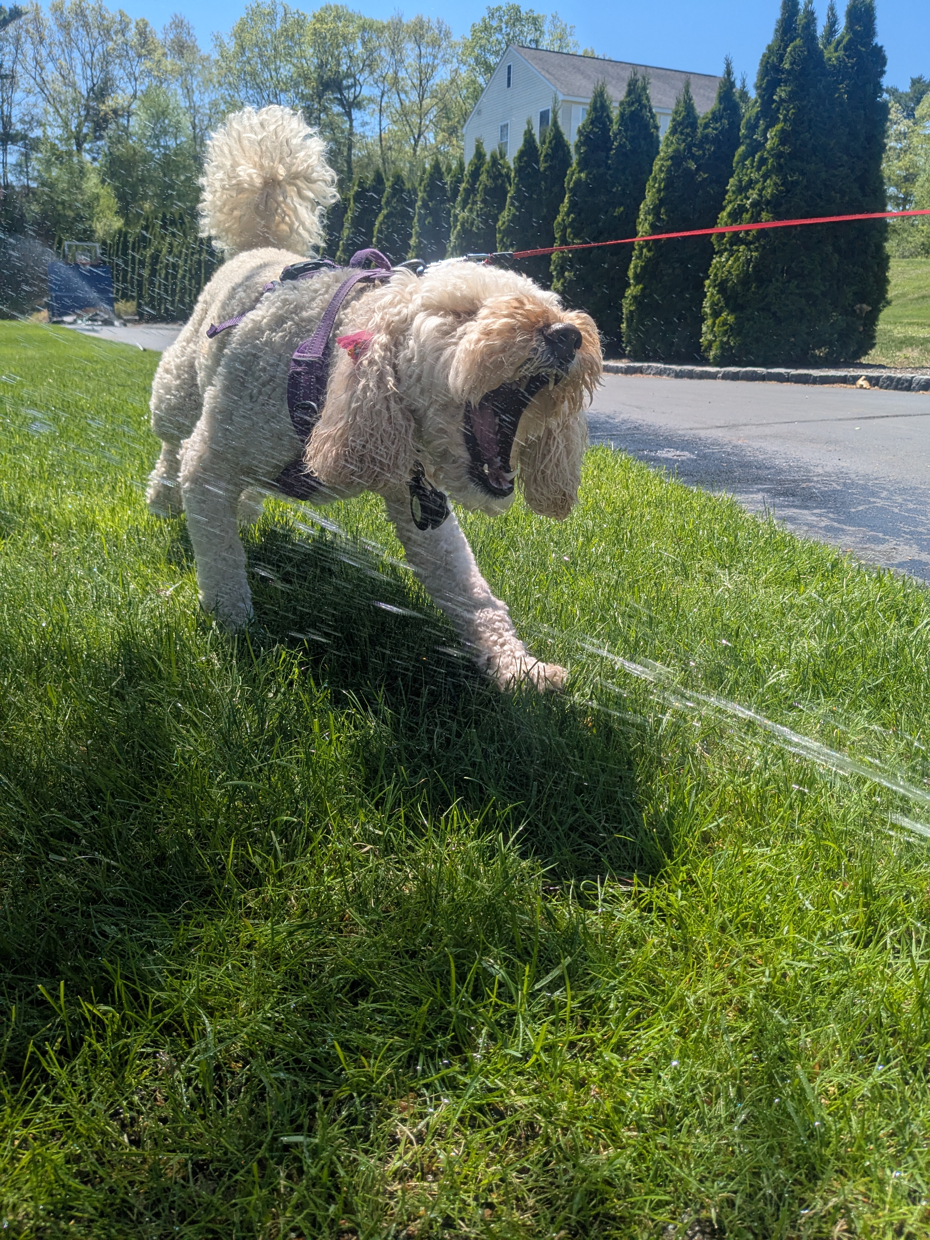 What’s more fun than a walk in the sun? Well how about the perfect sun shiny day and a sprinkler to play in and have a drink! While walking, a neighbors sprinkler system turned on and Millie couldn’t contain her excitement! She ran right over to it and had a drink and ran through it a few times! On the way home, she said she felt way too clean so she decided to walk through the muddiest puddle and got her paws oh so dirty! So not only did she have sprinkler fun, she got to play in the hose too!🤣 She is now squeaky clean! 🤦🤣❤️