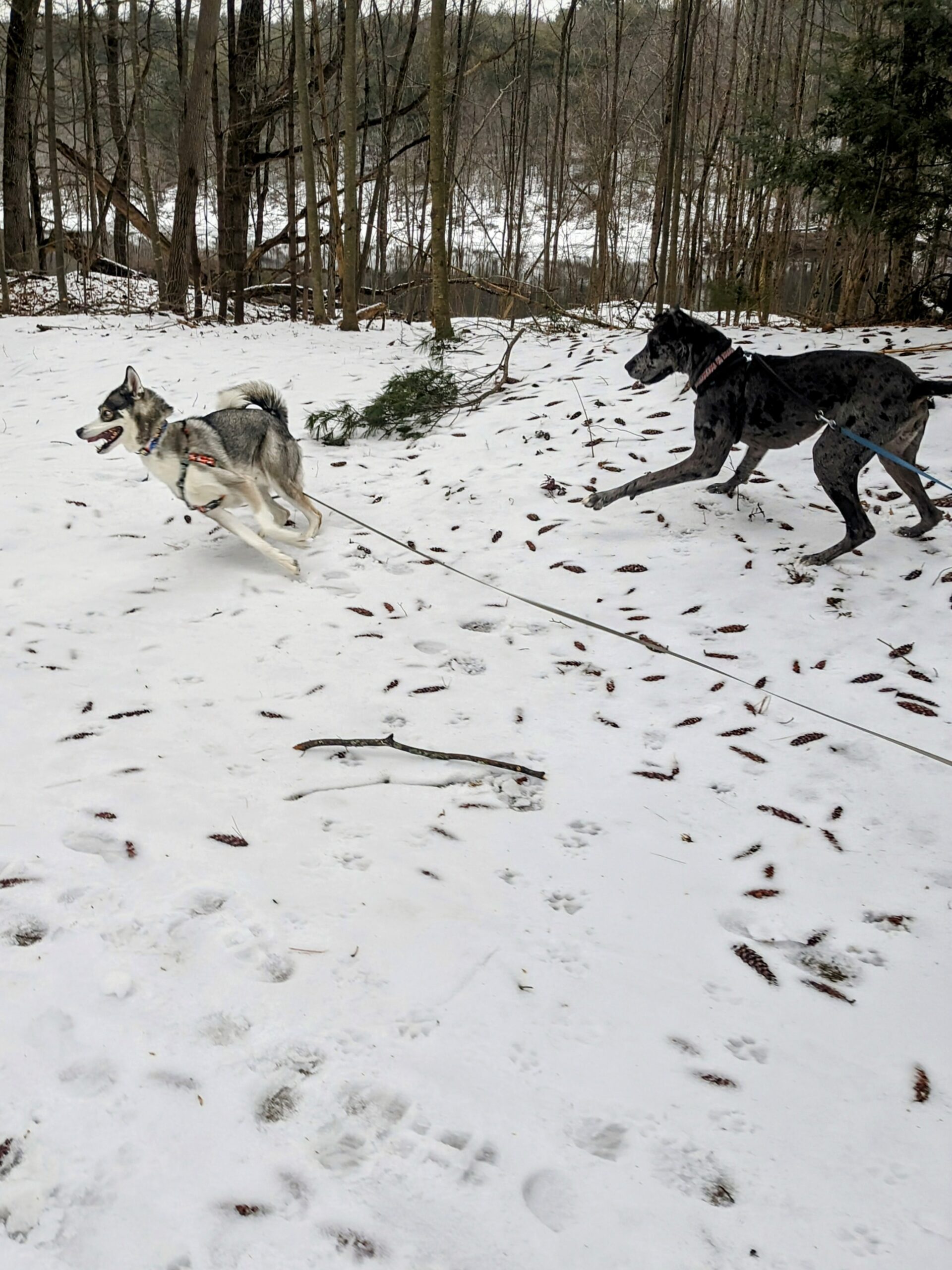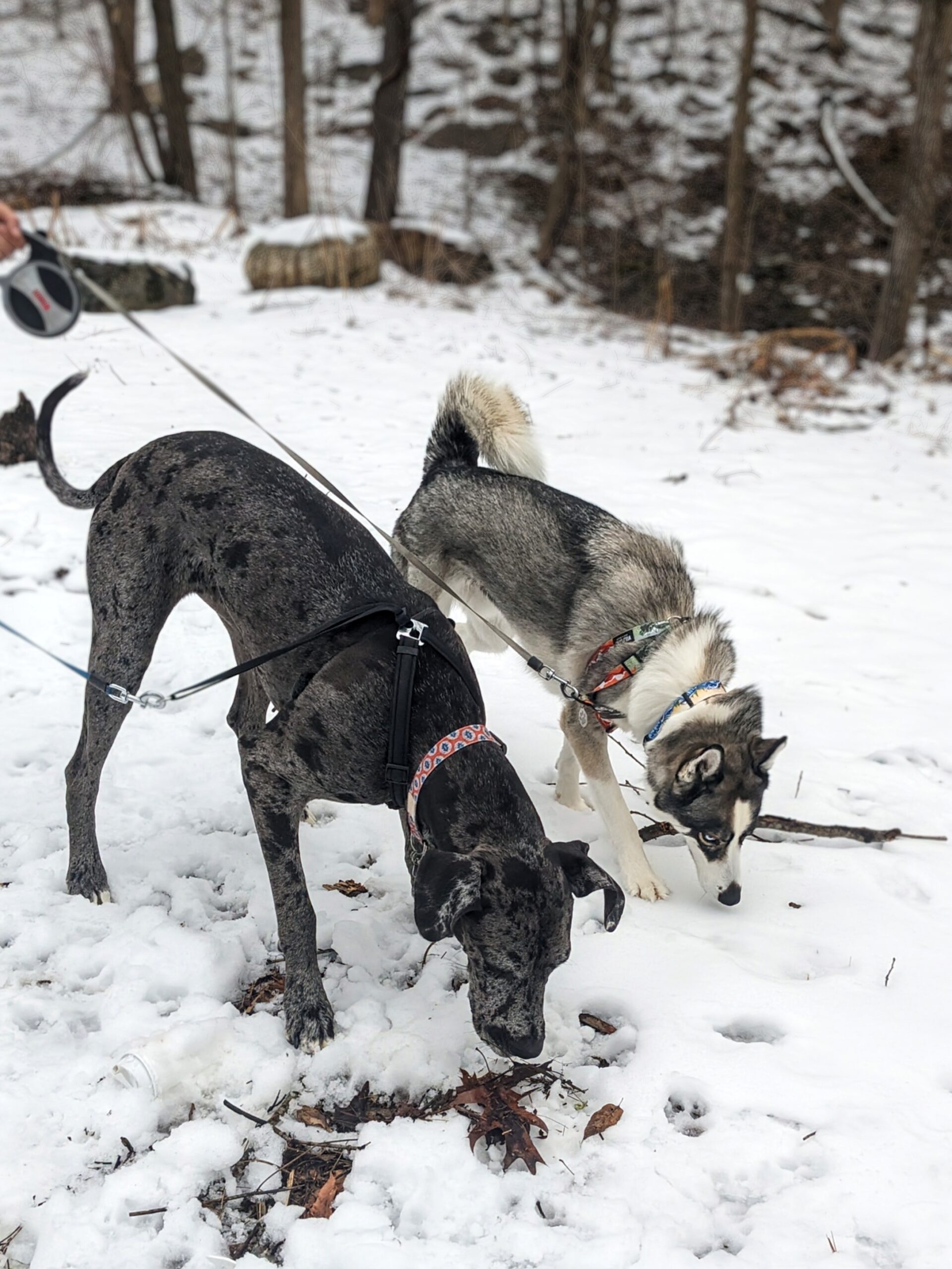Packer was jumping out of his fur when he saw Koda! 👀🥰 They got right to playing and chasing but eventually settled down to sniffing and exploring. Koda wouldn’t leave Packer alone – she was very interested in him – but she was quite intimidating! He literally headed for the hills to establish some boundaries. At the end though, there was nothing but ❤️ when they said goodbye.