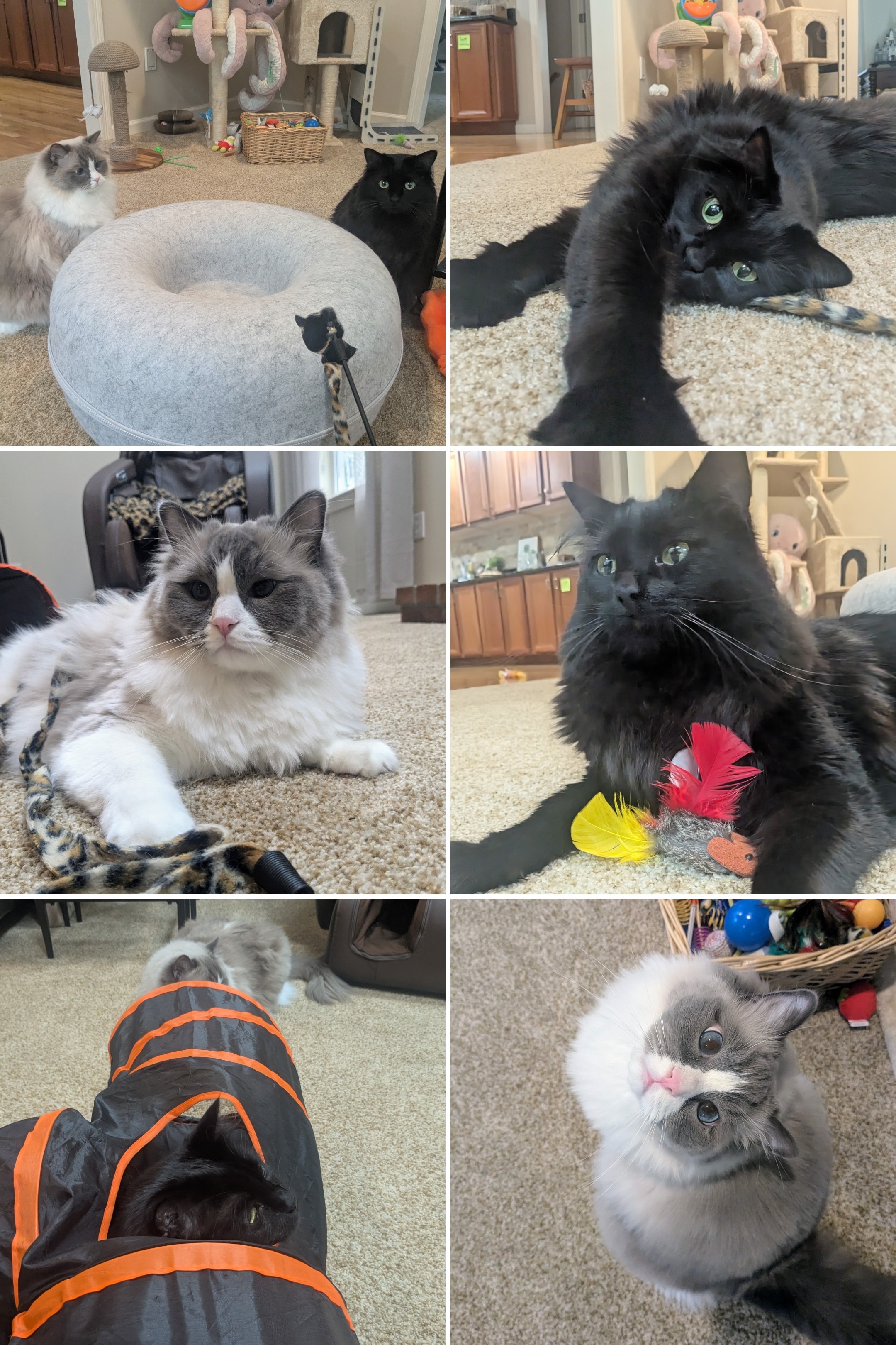 Both Toby and Elvis were filled with the sillies this morning!😹 We pretty played none stop except for a pet and purr time out! We treat hunted, played with their tunnel and even their leopard wand. They did tell me that since it’s a cloudy day, they will take plenty of cat naps so they can be ready for more sillies at dinner! 😻