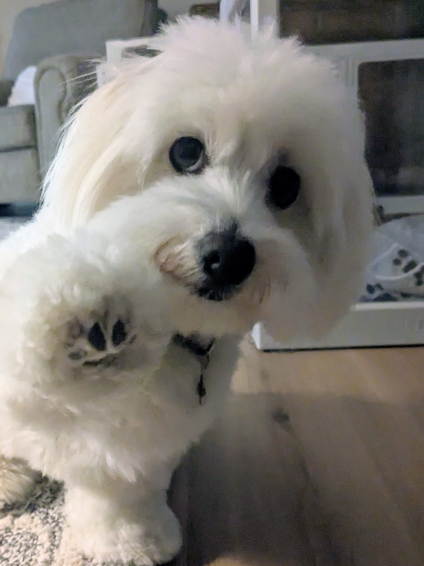 Whitley was so cute and boy is she so smart! This morning to motivate her to eat we tested her trick skills and she did and has a full belly! From high five, to paw, to down, she did them all with such confidence. Her widdle tailed wagged the whole time!
