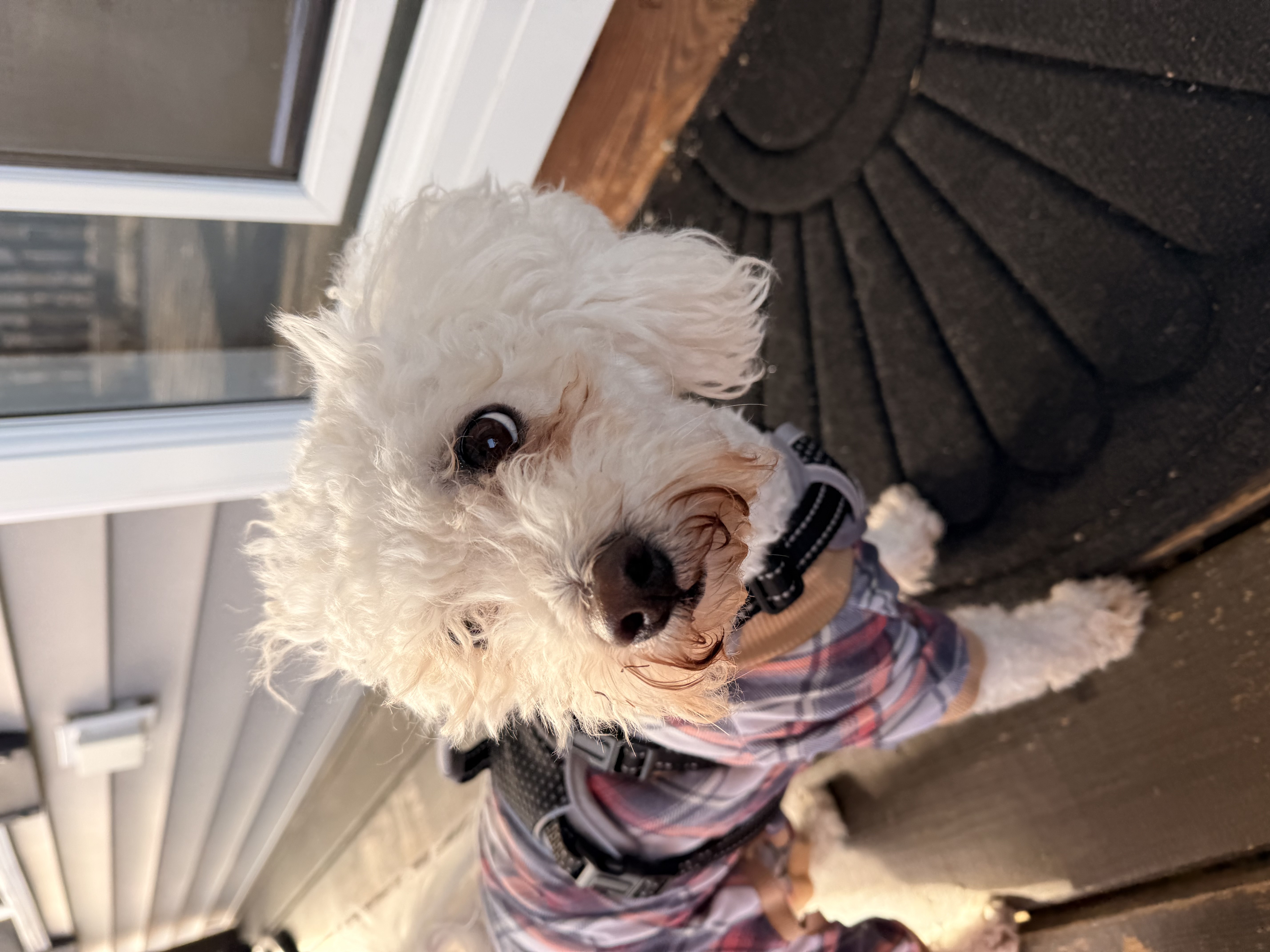 This morning on Mylos walk it was a bit windy.. His hair and eyes were blowing all over the place but that doesn’t stop this explorer! He walked around the neighborhood winding surface with the air and carried on with his business. I had gloves on for the walk so I didn’t take pictures till after we got back, as you can see he’s still the cutest munchkin even after his hair has been blowing aimlessly! 😆