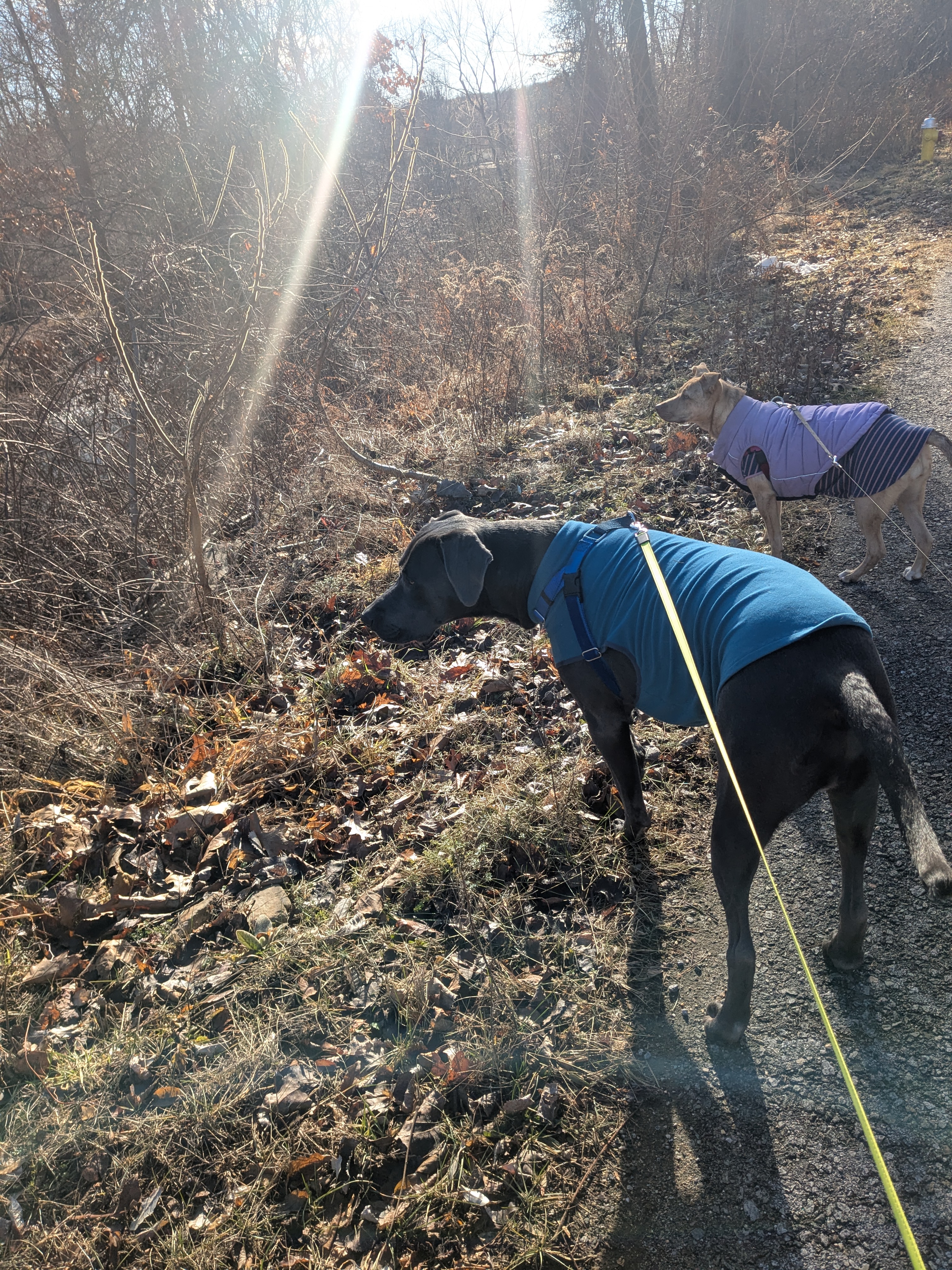 I think Oliver has the winter Itch! Or maybe he just LOVES to stop, drop, plop, summersault or flop on the crunchiest of crunchy grass!🤣 Today it was pretty much every other lawn and Lucy was so patient and hung out with me and got some extra love while Oliver did his acrobatics.❤️🤣 Lucy did roll and few times but maybe to just practice her skills so she can compete with Oliver for best summersault at some point.🏆 We also had fun listening to the bubbling brook. The pups were fascinated by the sounds. It was a fun day with my furiends!❤️🐾