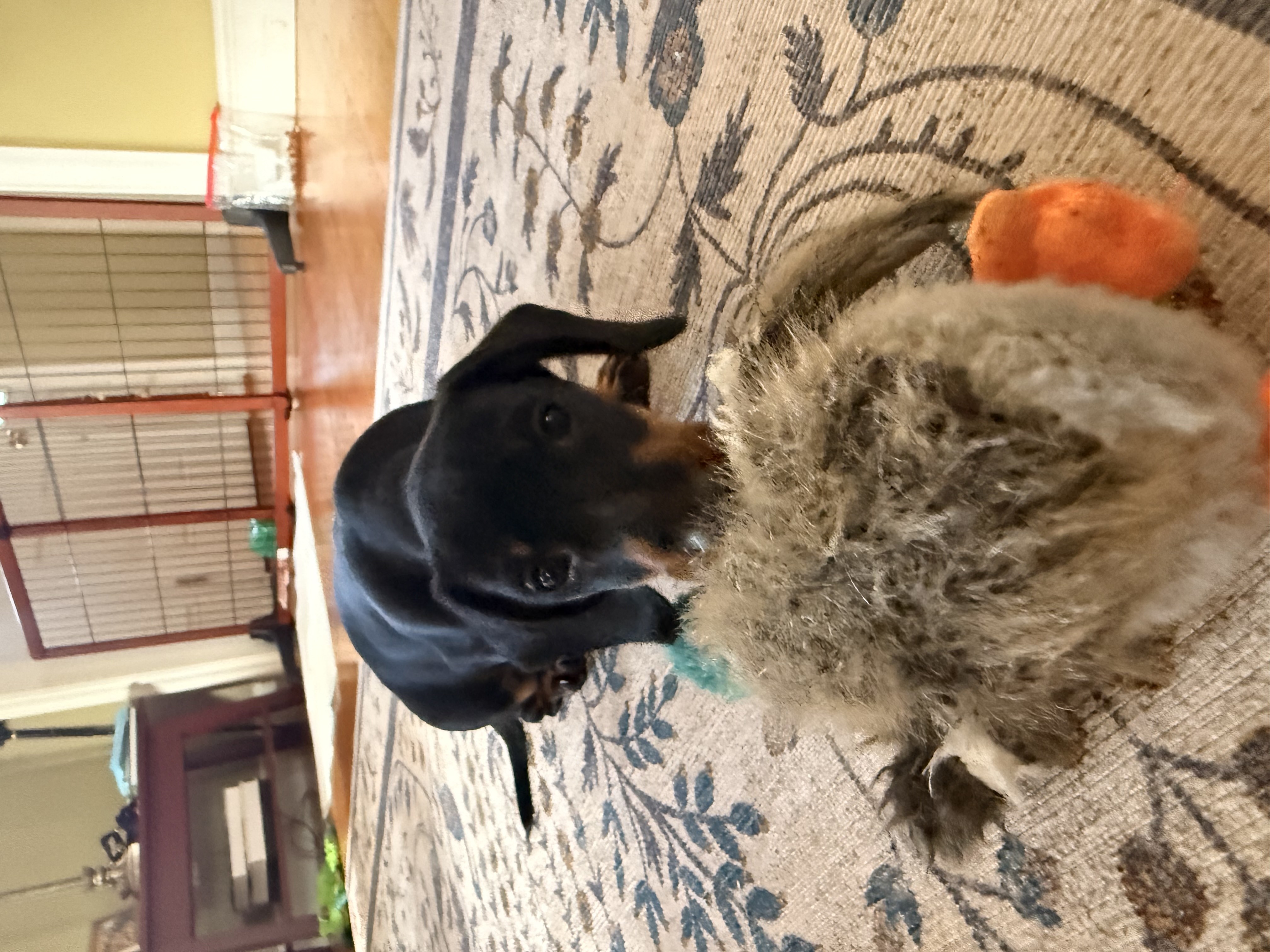 I get my name Puppy Power for my love of the pups we get to play with! These rambunctious boys were both happy to run around and catch a duck! Otto is doing good with his pad in no time…