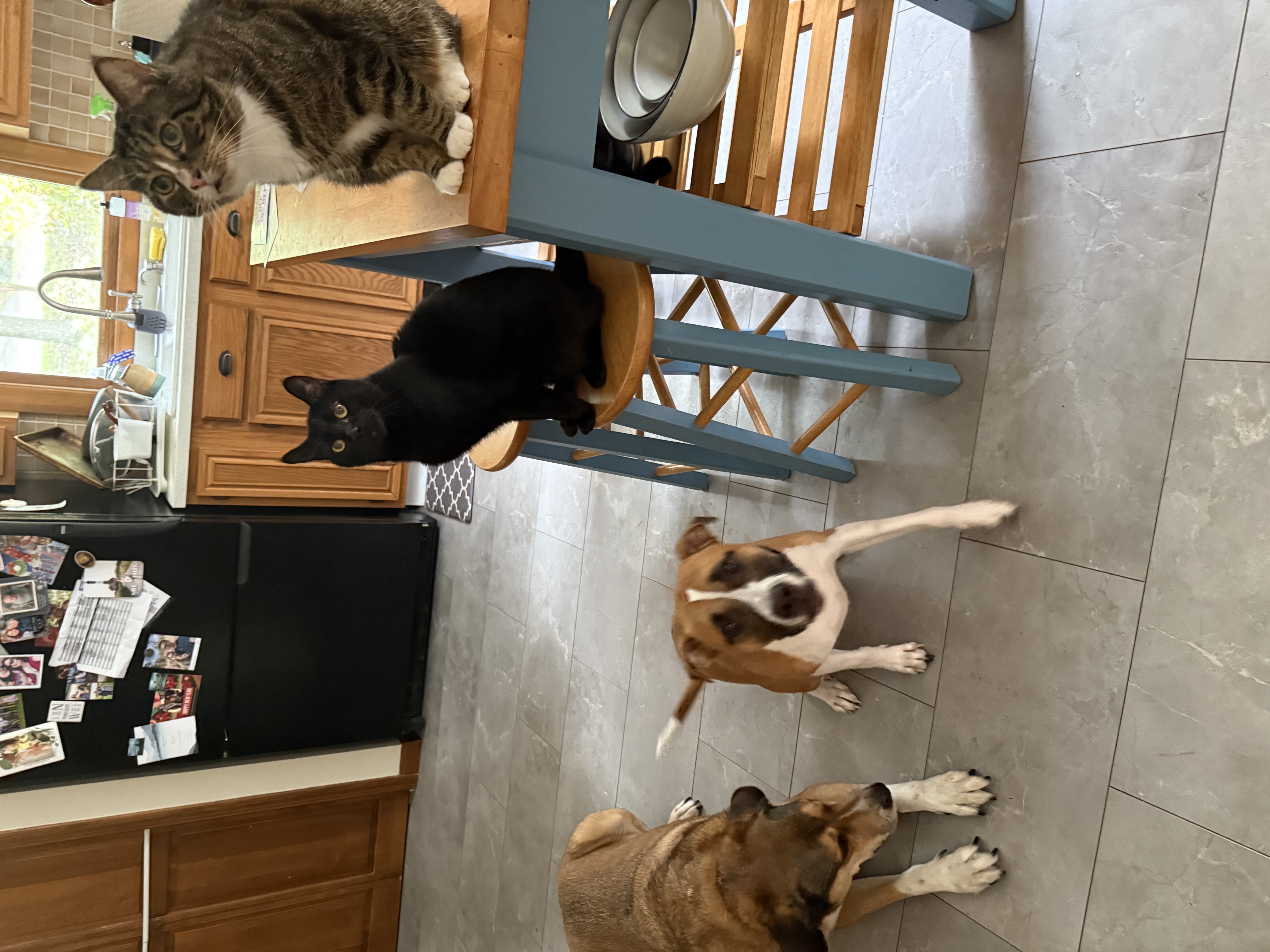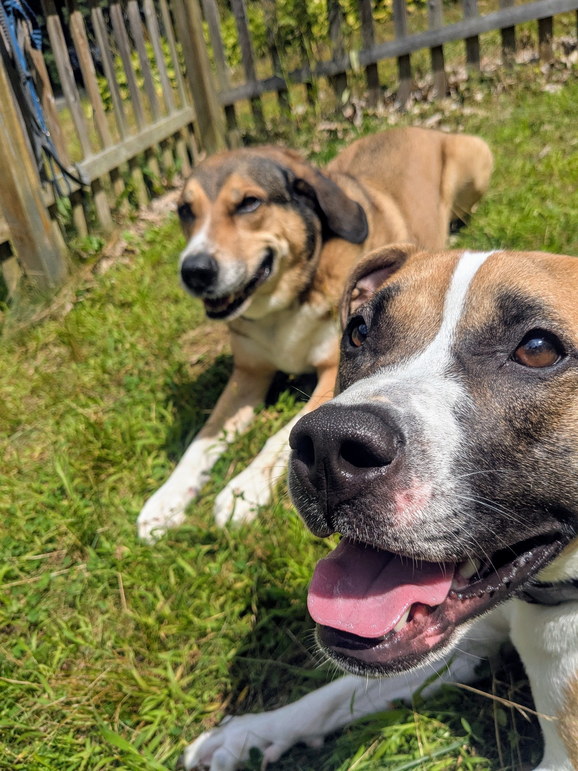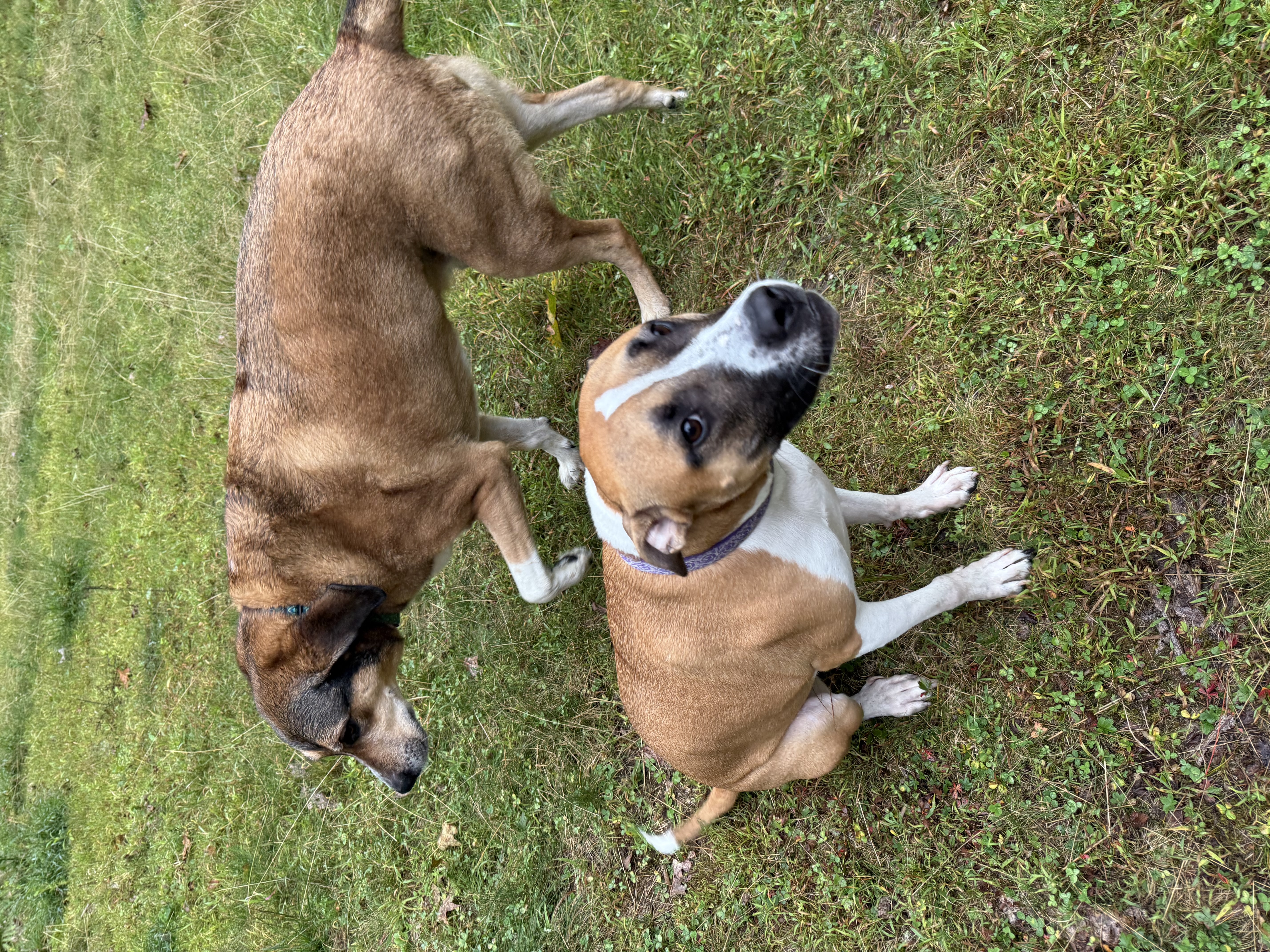 A group picture, something I didnt think I would ever get. These lovely furry friends have been doing awesome! Winnie chews on bones and likes to play fetch throughout the day and Syd just likes to hang out and occasionally