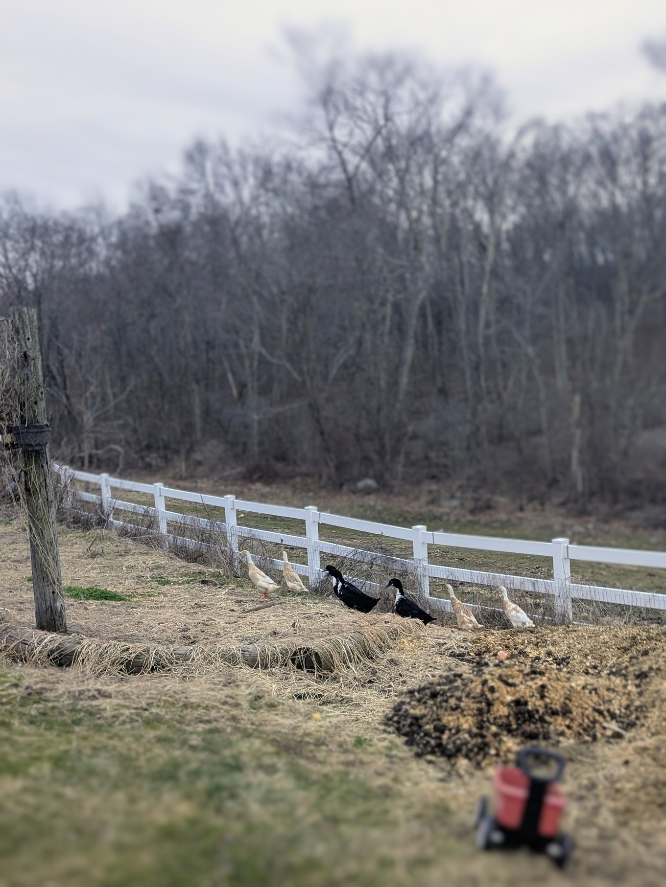 So pleased to be able to let Ackley stretch his legs outside today! He and Astrid eagerly went out to graze just as the sun was rising. Franchy and Layla oversaw the chickens and ducks filing out for the day.