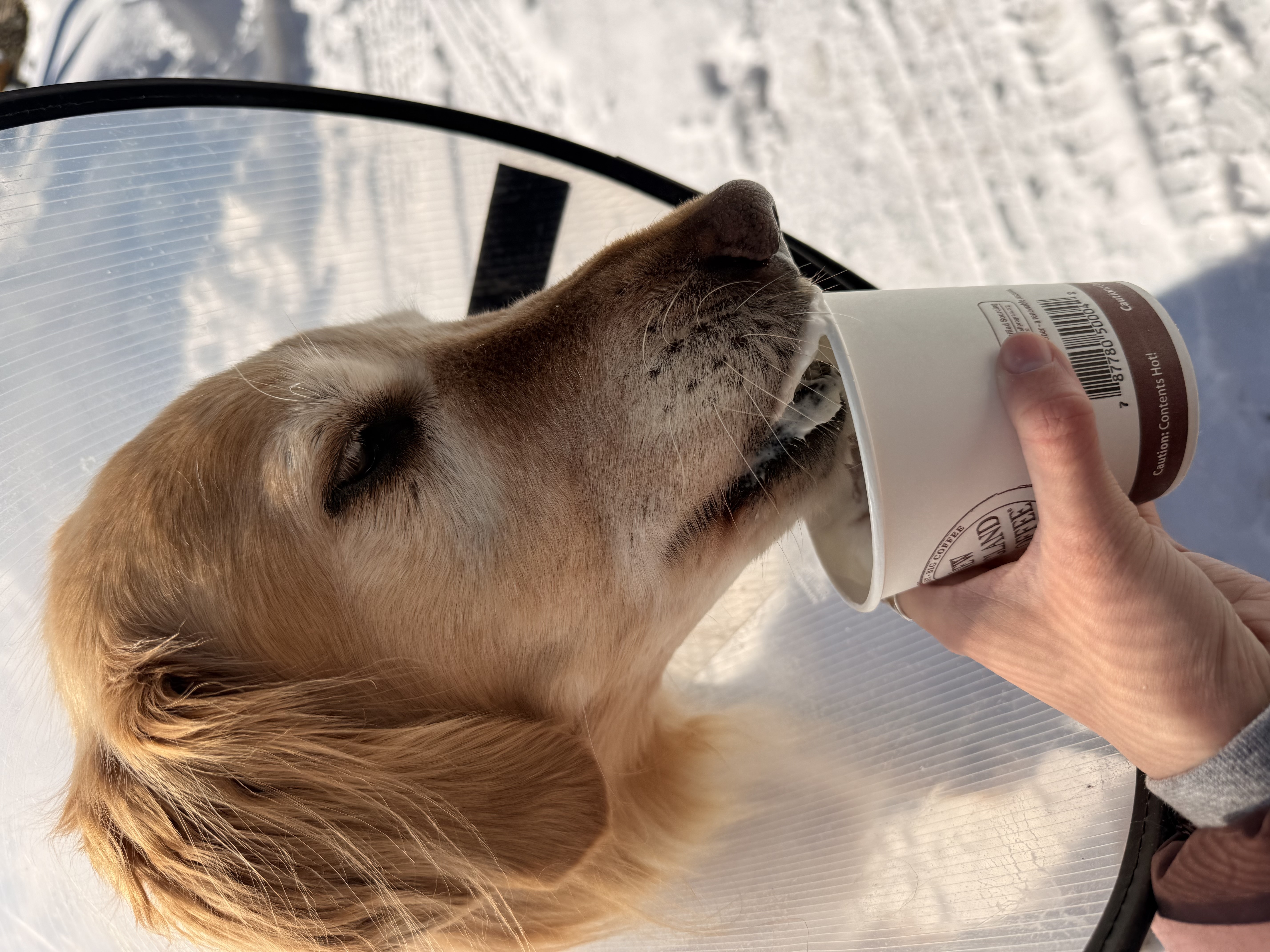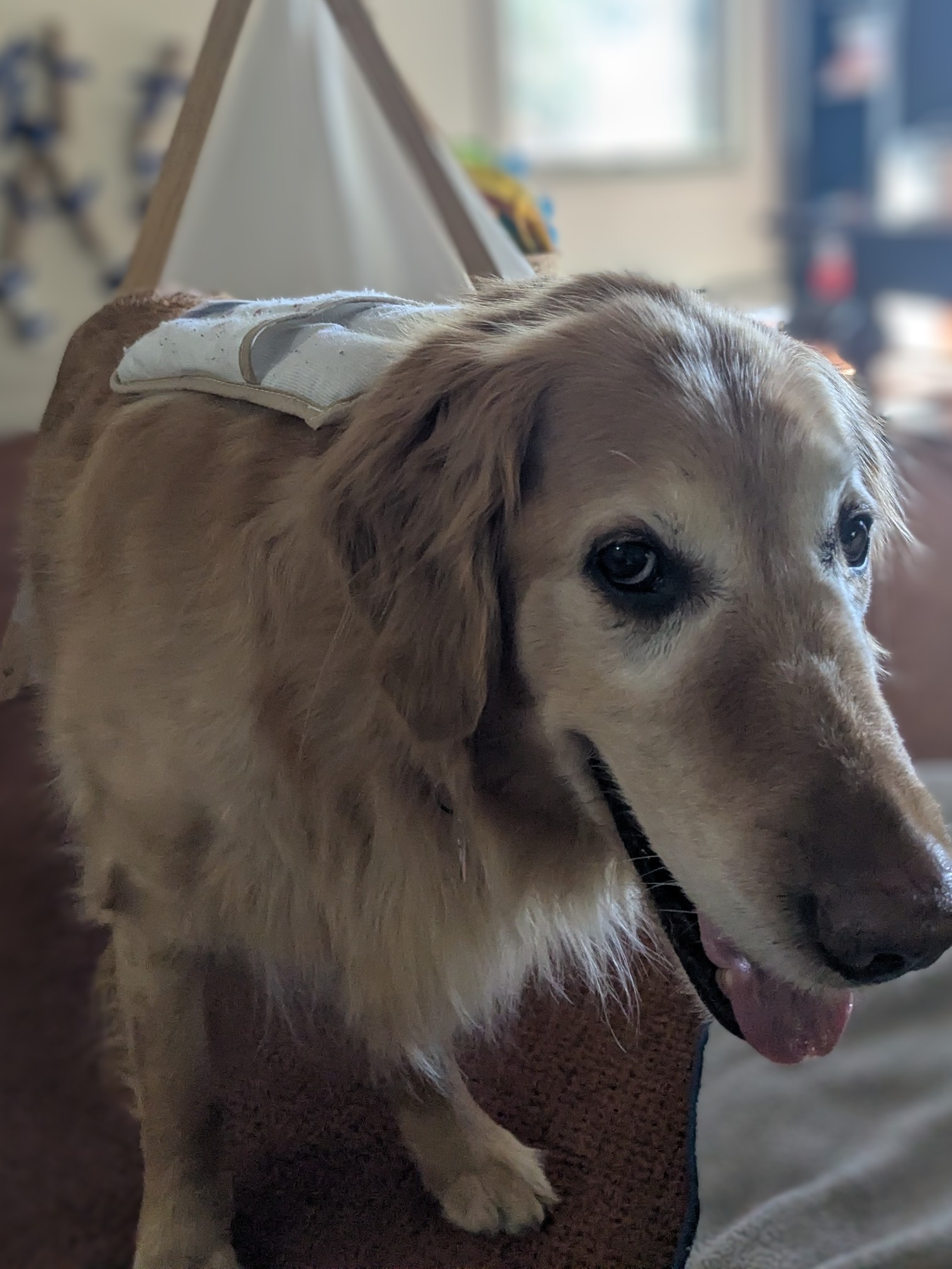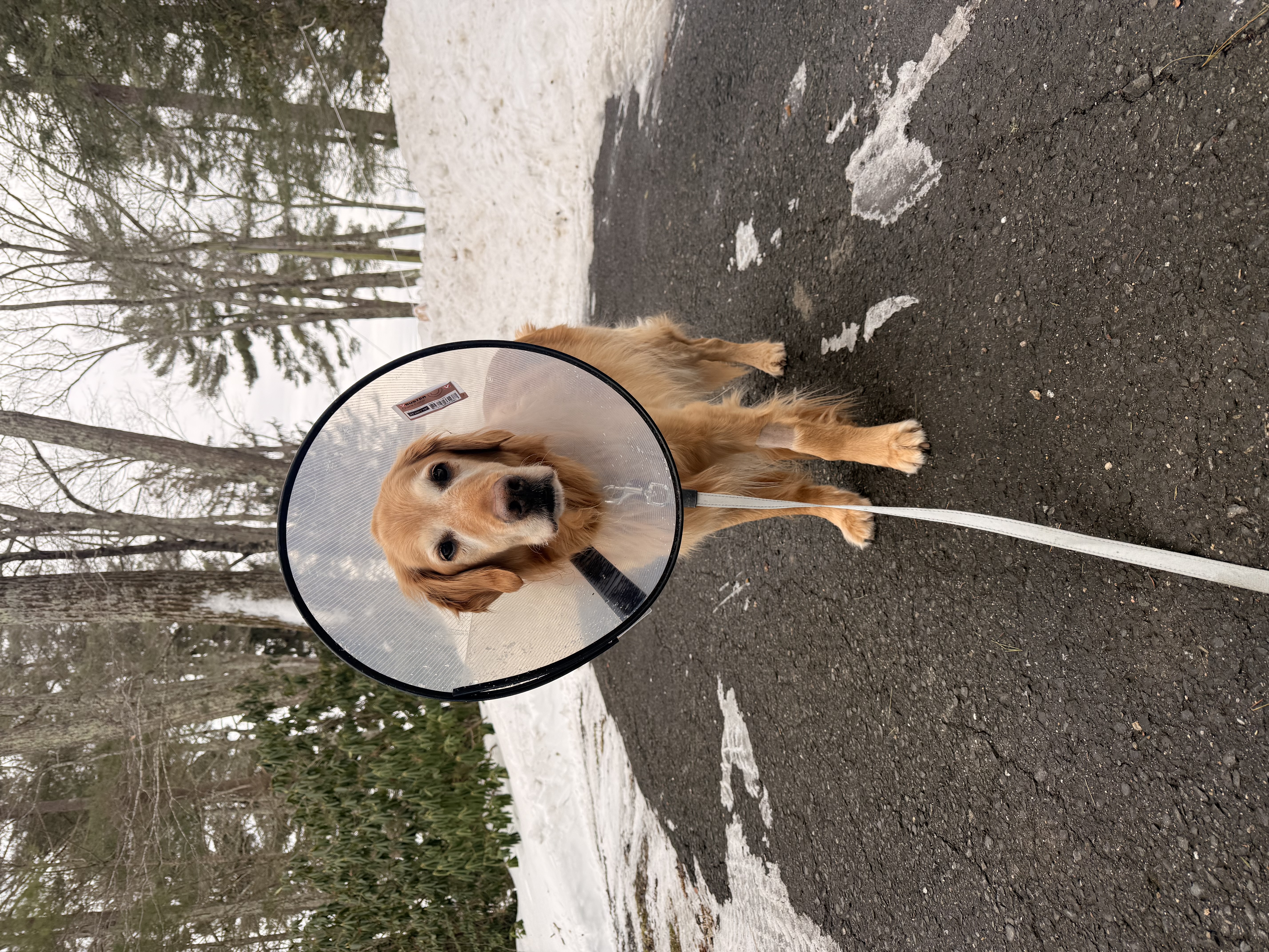Julian was very cooperative and in kind of a good mood, despite his obvious discomfort. He was thrilled to have the cone off, even for just a few minutes. 😊 We strolled to the dumpster and back, deftly avoiding Arlo