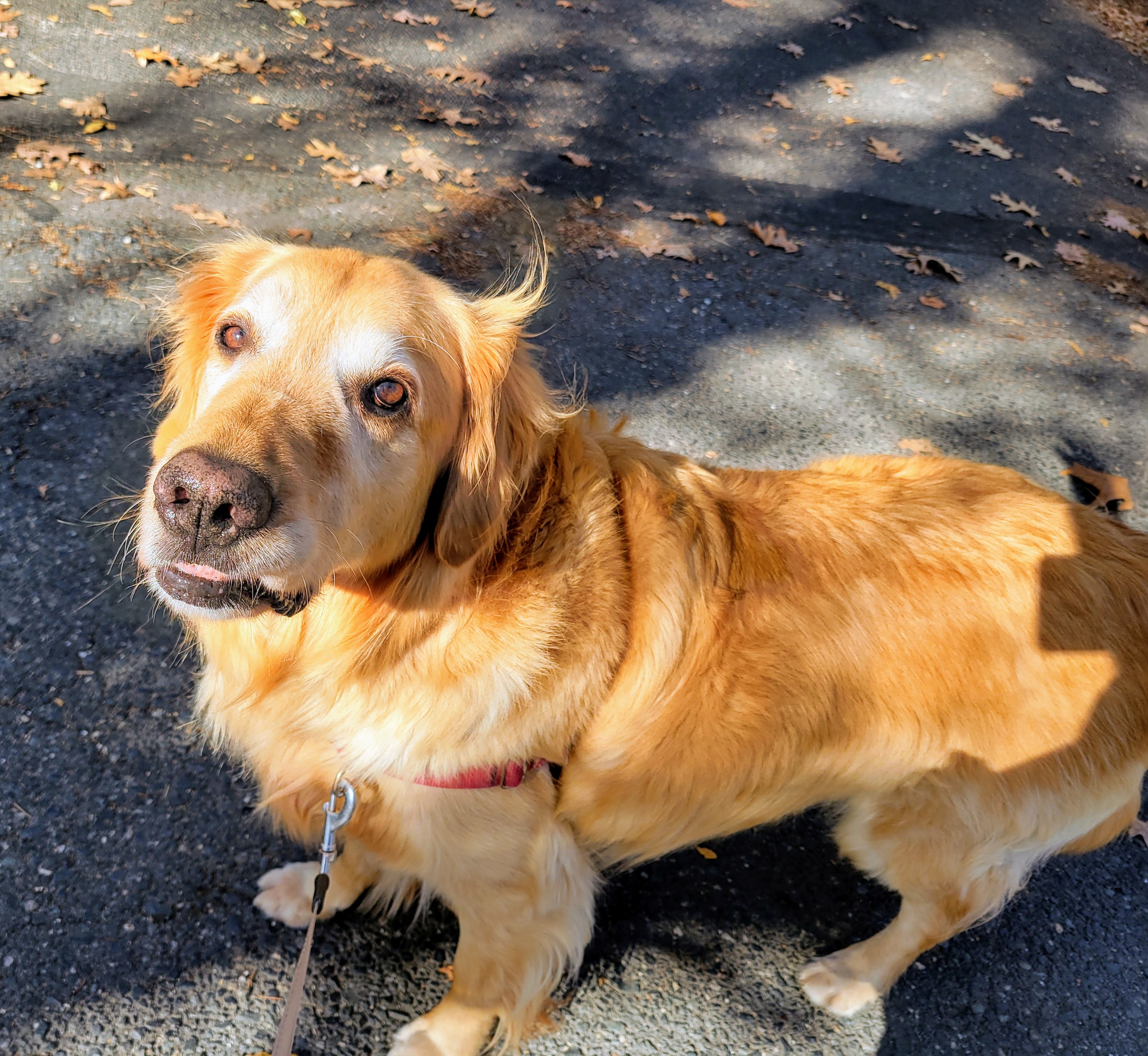 What a beautiful morning! Julian had his face to the sun 🌞, his nose to the wind 🌬, rolling in the leaves 🍂 again and again! 🔁 Julian walks are the best way to start the day!
