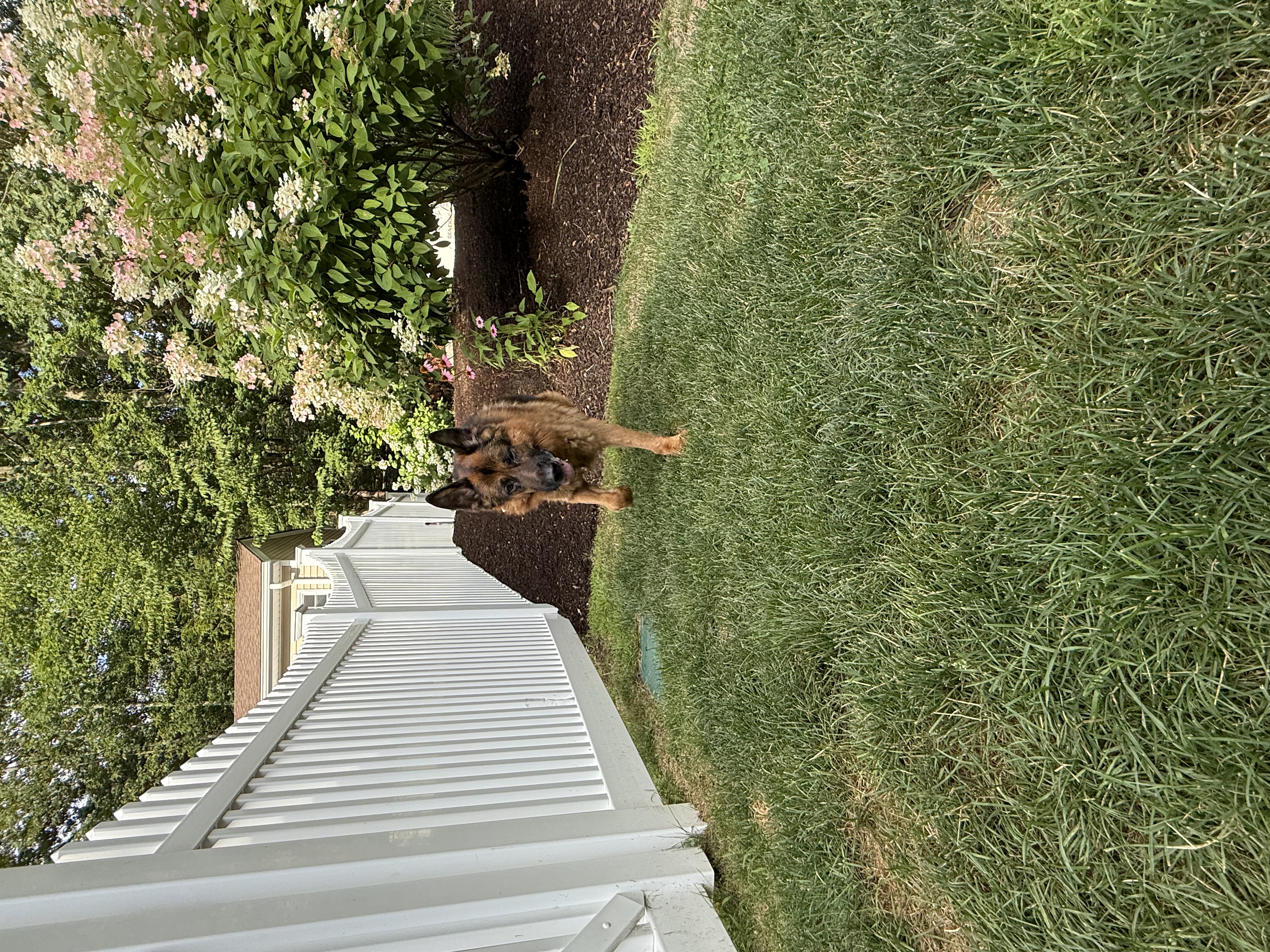 We got Max outside after dinner before the storm came 🌧️ I’m hoping he’s not too scared of thunder! He ate all his food and explored in the backyard for a little bit.